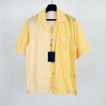 High-end Louis Vuitton replica shirt with monogram & stripe patchwork. A perfect mix of luxury and street style at a replica price you'll love. -