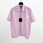 Iconic Louis Vuitton replica short-sleeve shirt with monogram and stripes. High-quality, stylish, and affordable designer-inspired fashion. -