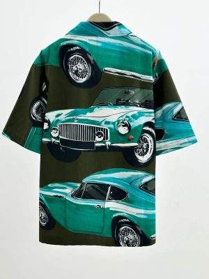 This Burberry replica cotton poplin shirt features a relaxed fit and signature car print. A perfect blend of luxury and affordability in replica fashion. -