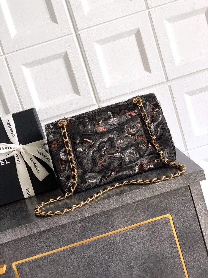 Premium Sequins & Gold-Tone Metal Replica Flap Bag