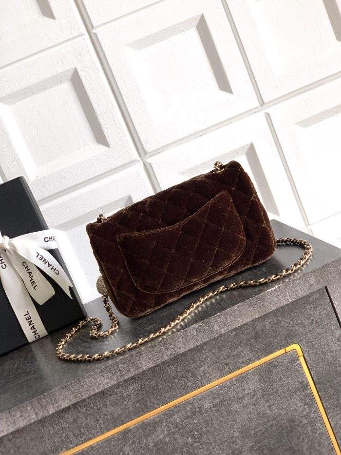 Mini Velvet Replica Flap Bag with chain strap. Chic, versatile, and luxury-inspired for casual outings or evening occasions. -
