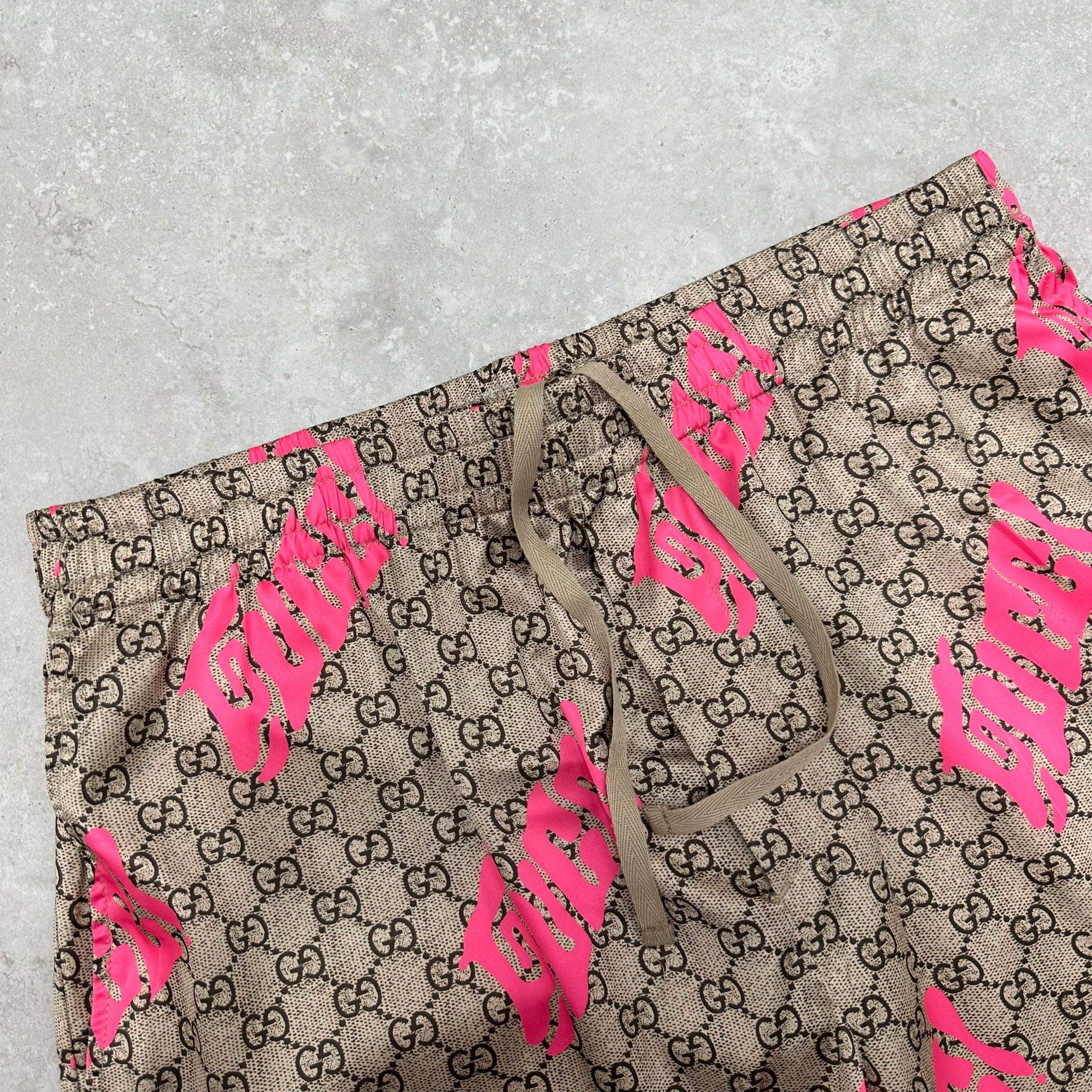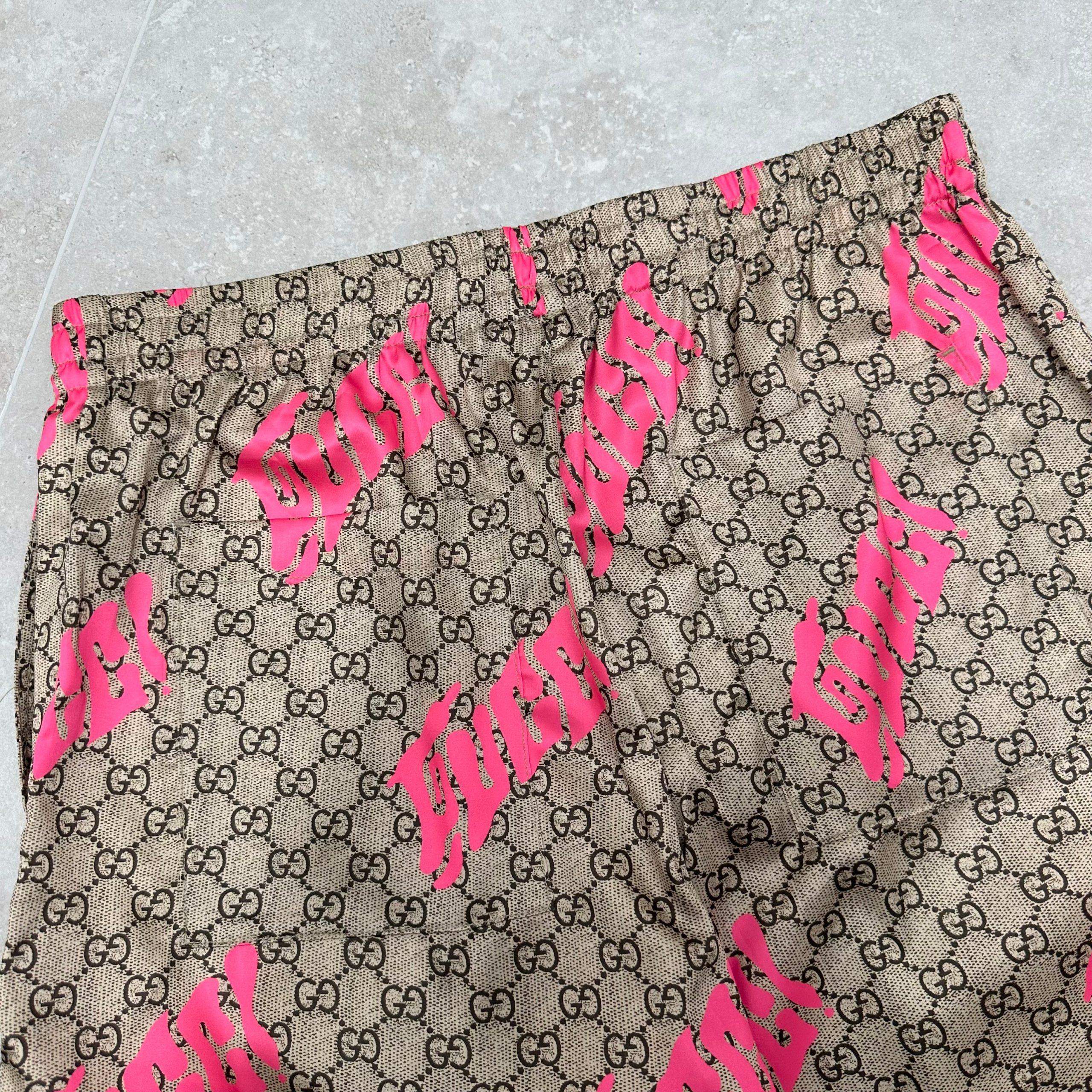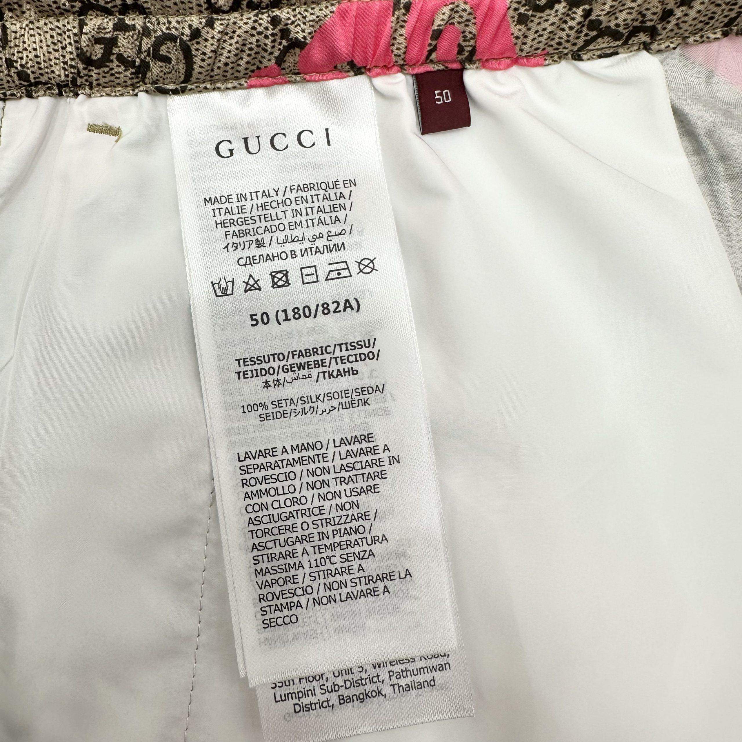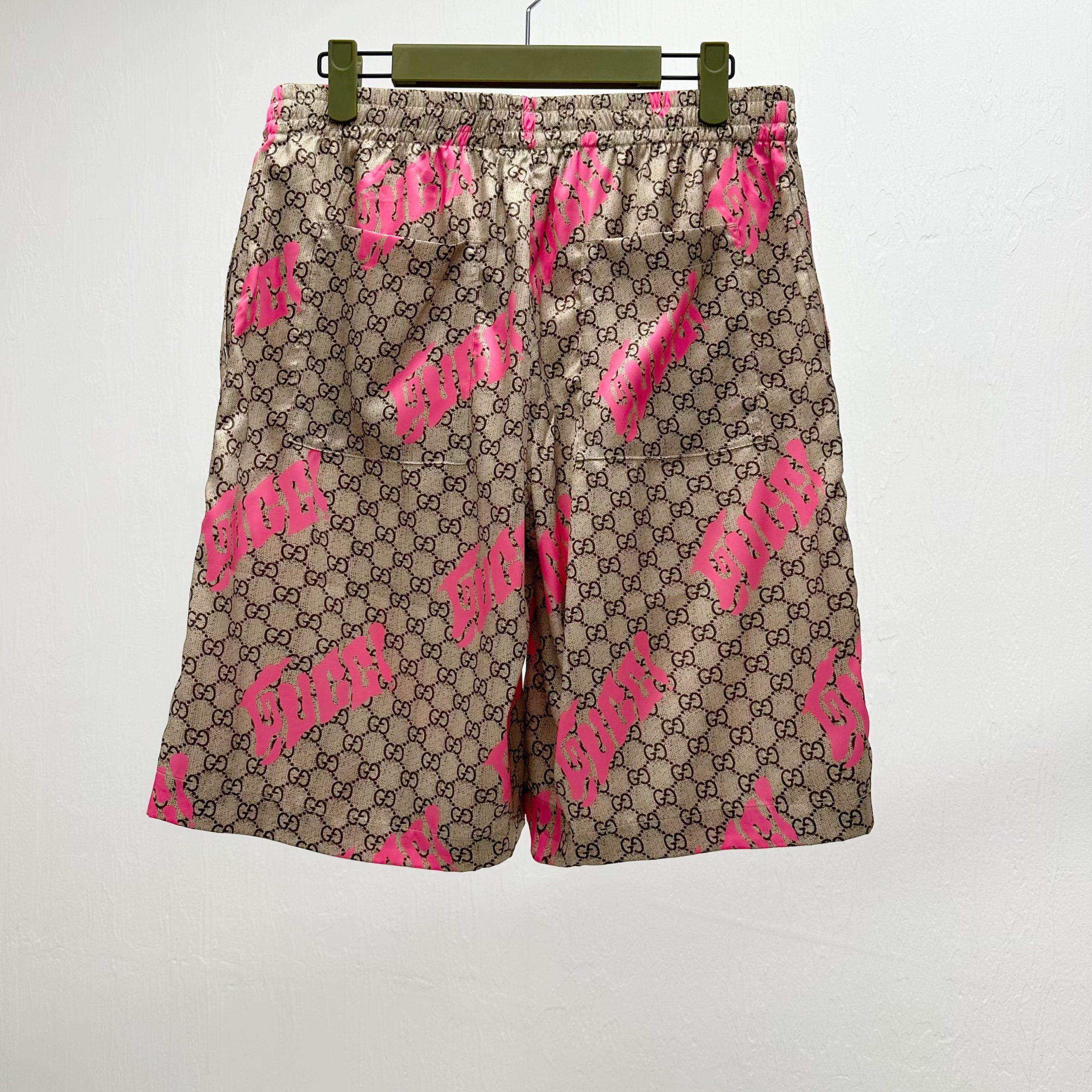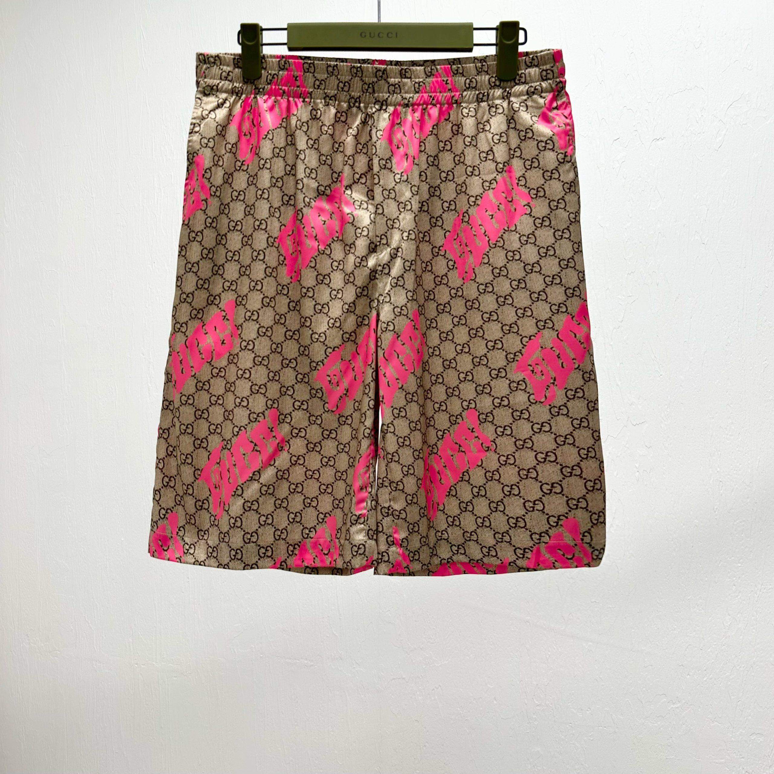 Premium Gucci printed silk twill replica shorts. Stylish, high-quality replica designer clothing perfect for summer wear and luxury-inspired fashion.