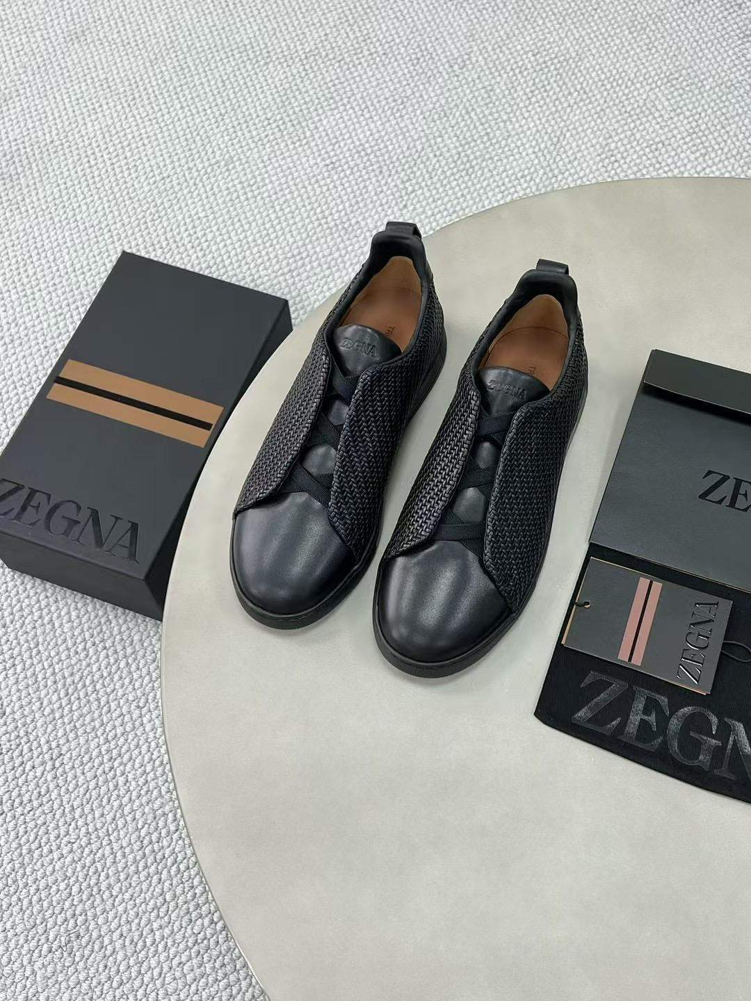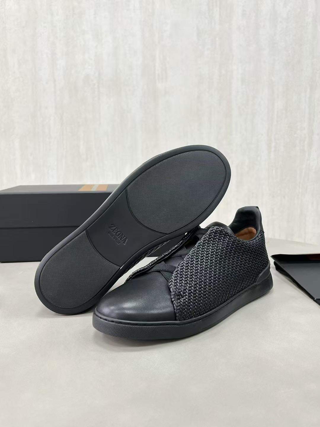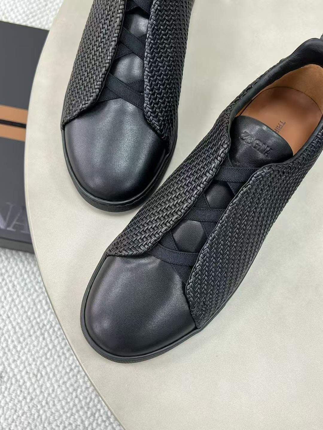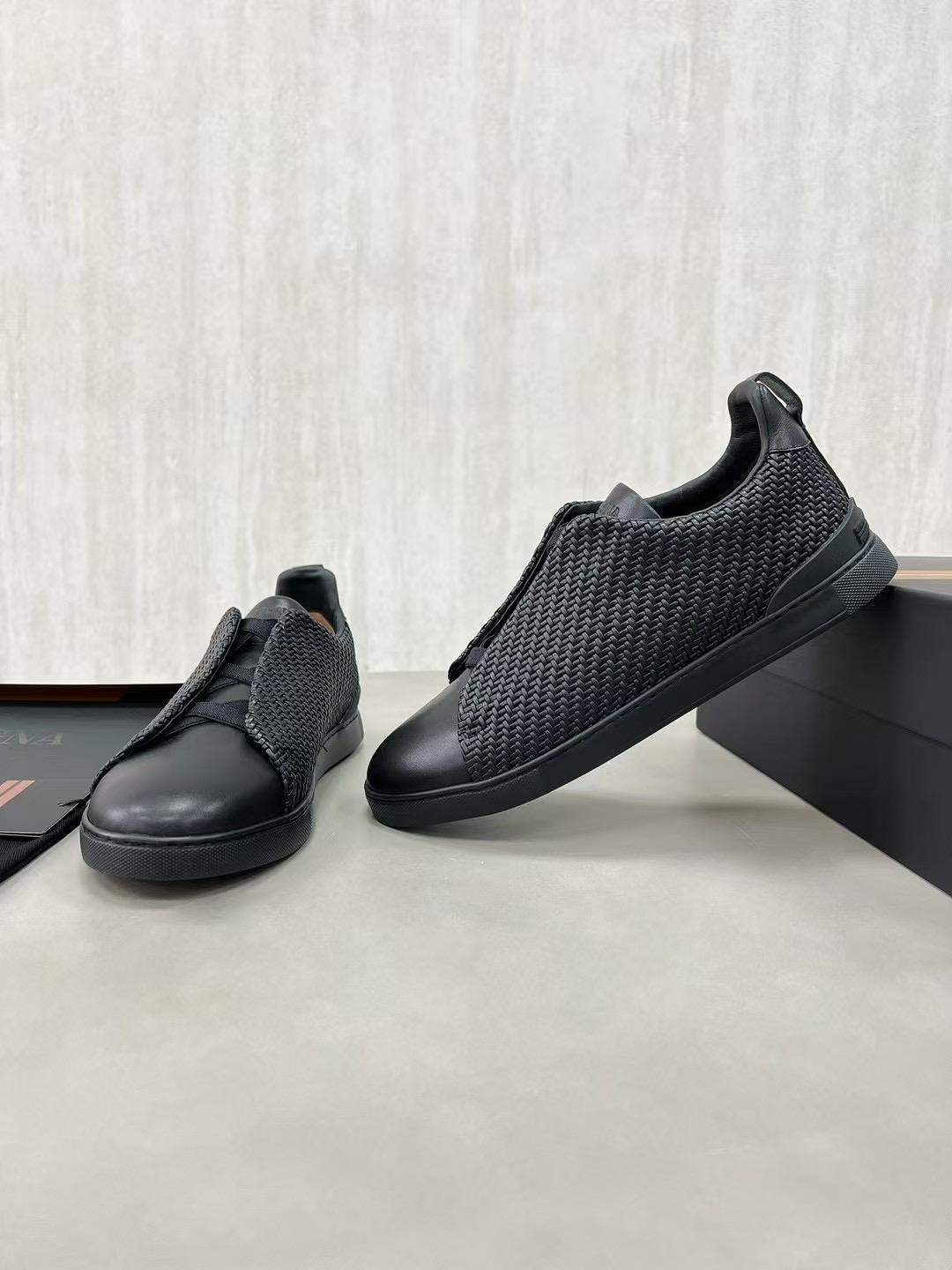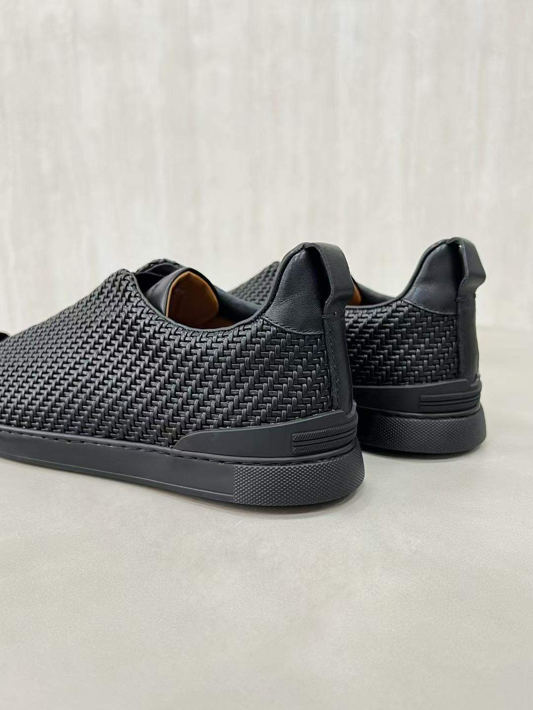 High-quality Replica Ermenegildo Zegna Pelletessuta Leather Triple Stitch Sneakers with woven detailing and signature style. Luxury comfort meets elegance.