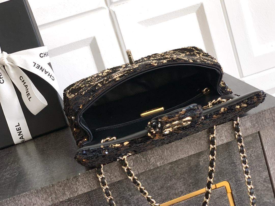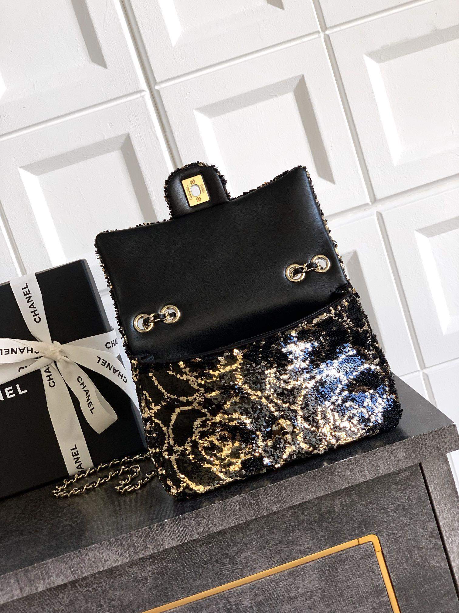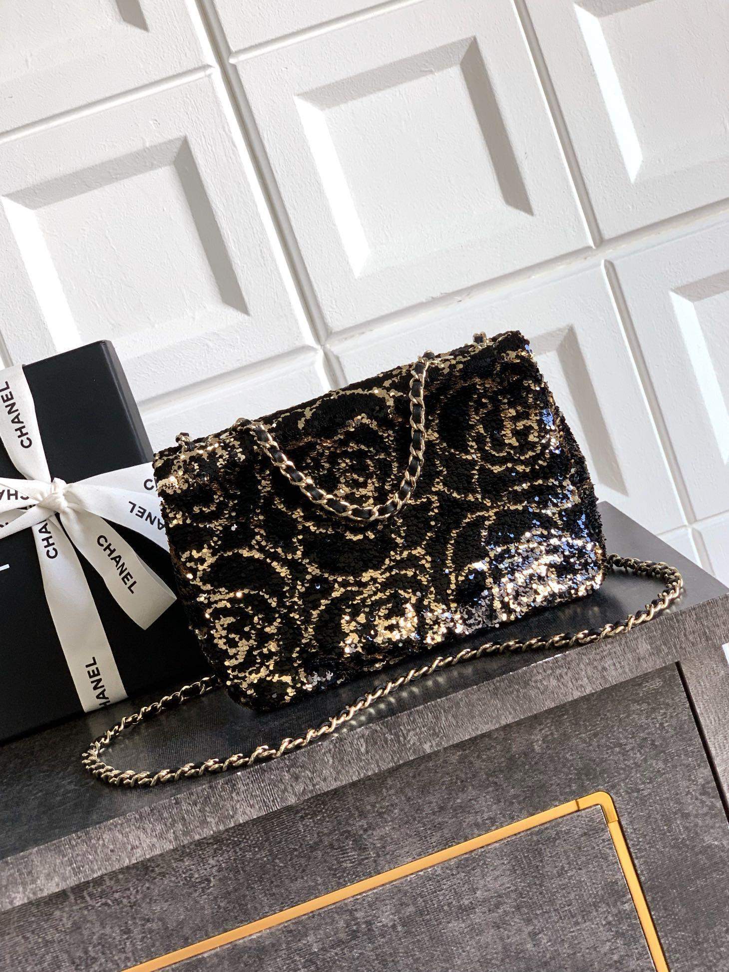Premium replica flap bag with sequins & gold-tone metal. Stylish, high-quality replica handbag for evening elegance and chic fashion.