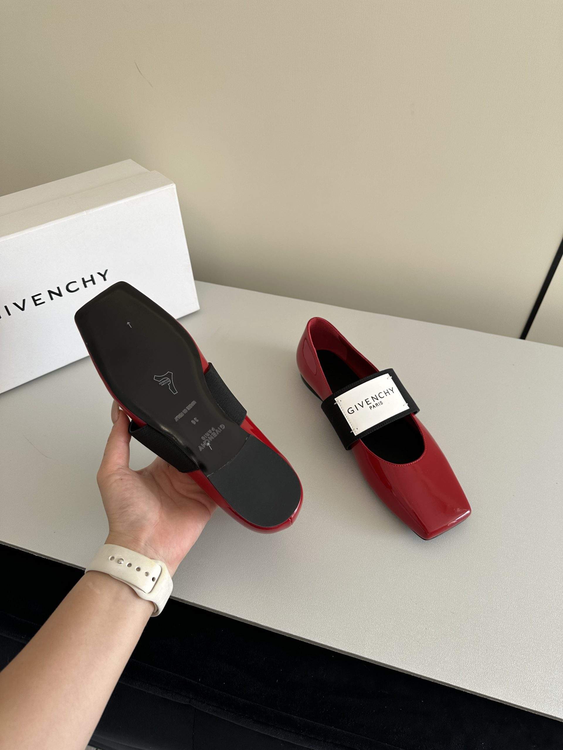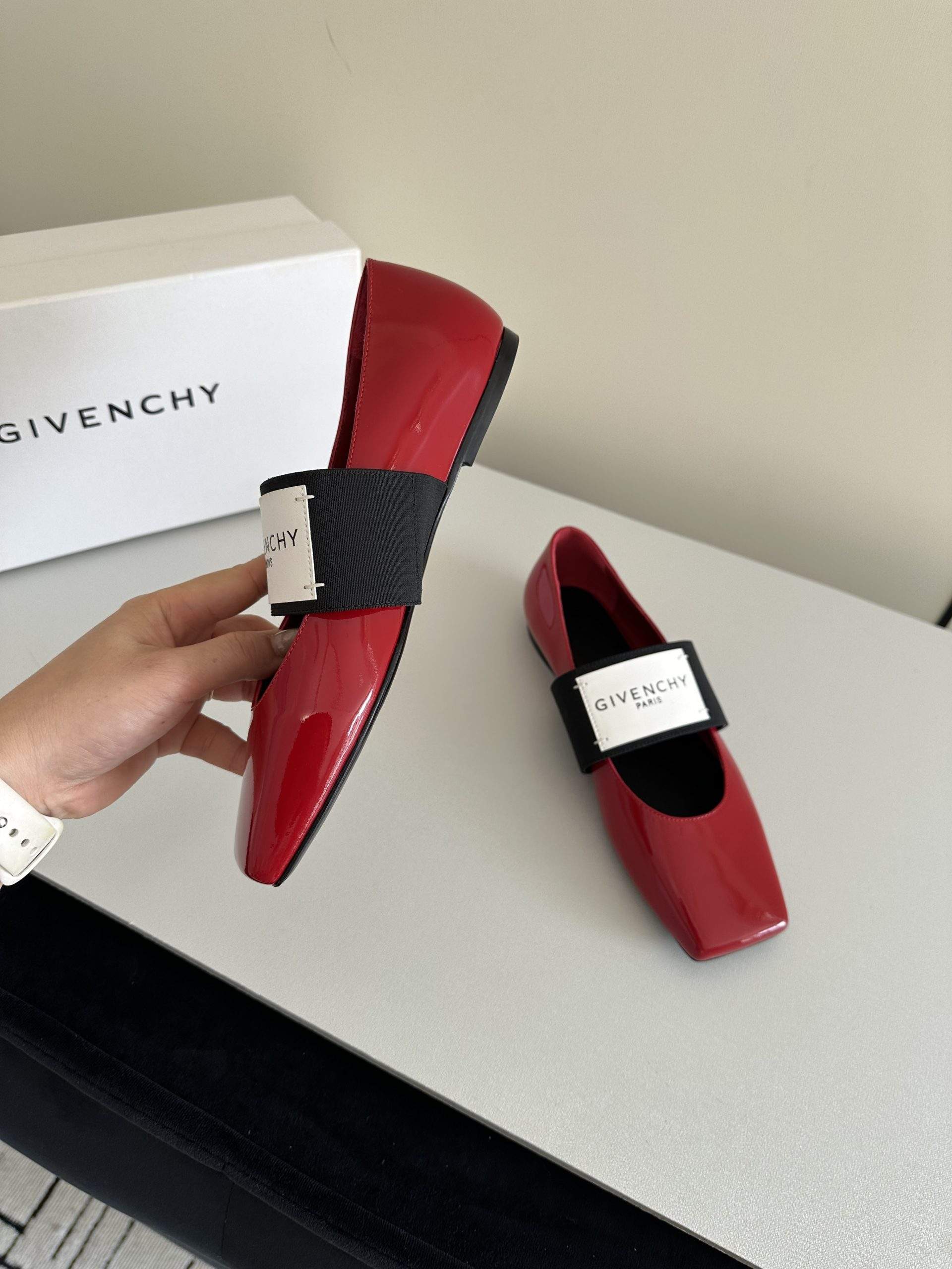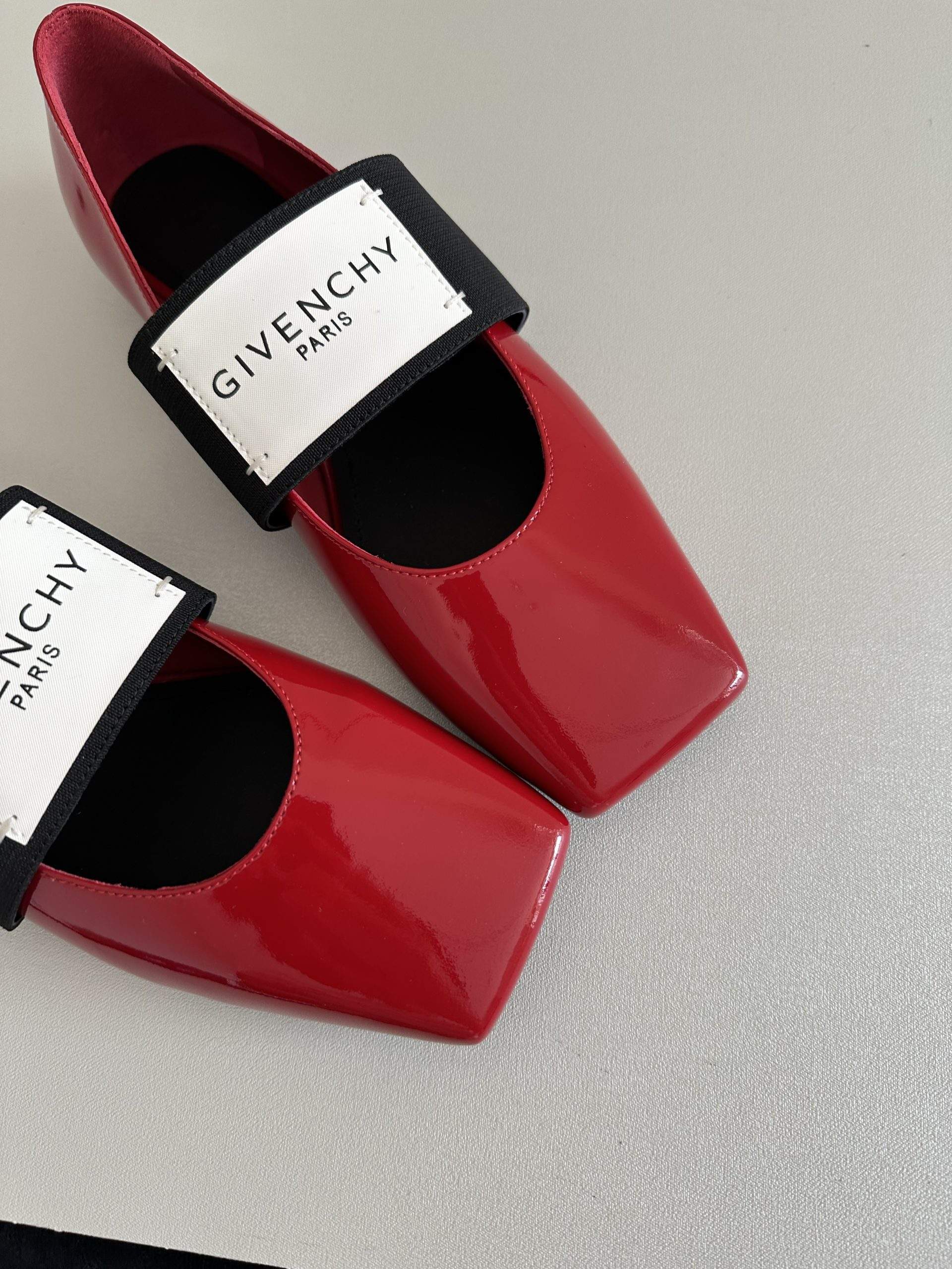 Premium Givenchy Sliced Square replica ballerinas in glossy patent leather, combining high-end craftsmanship with comfort and modern style.