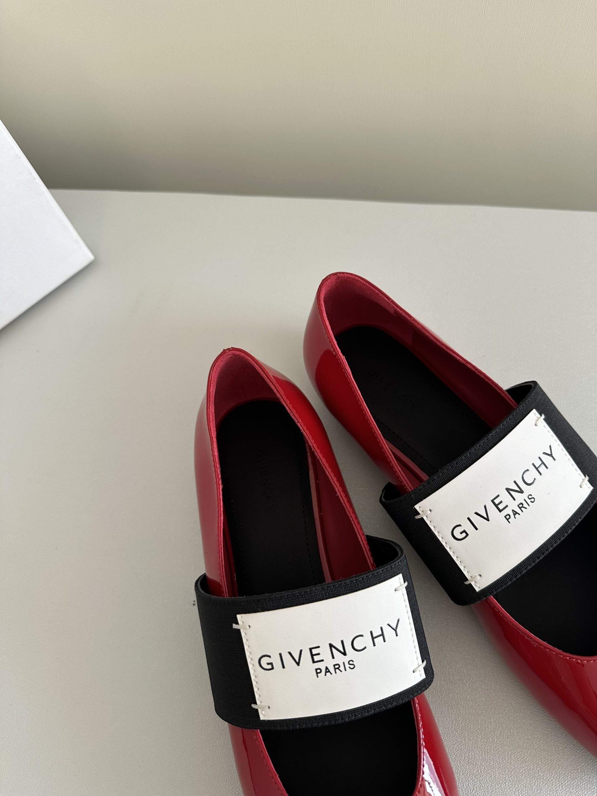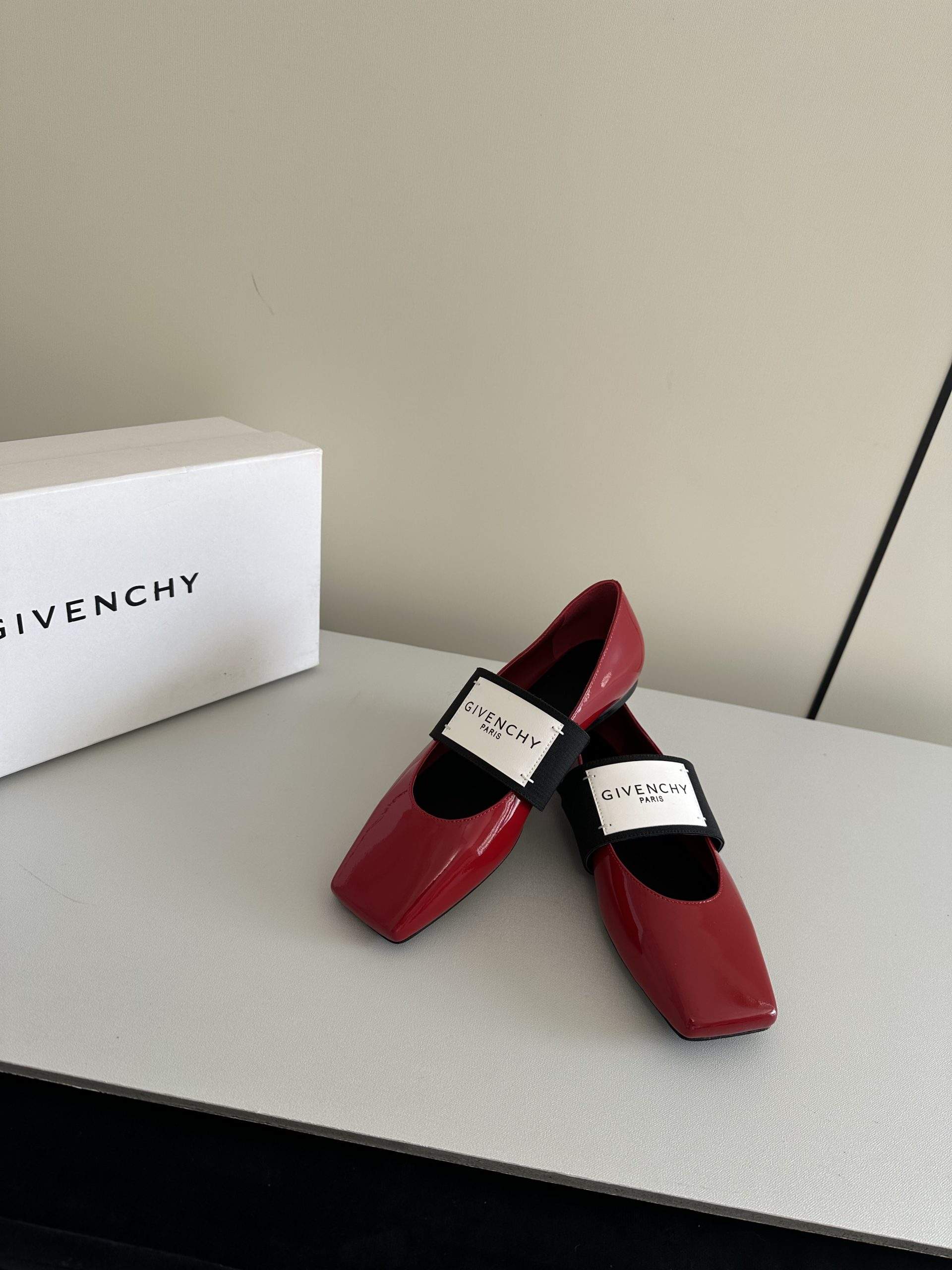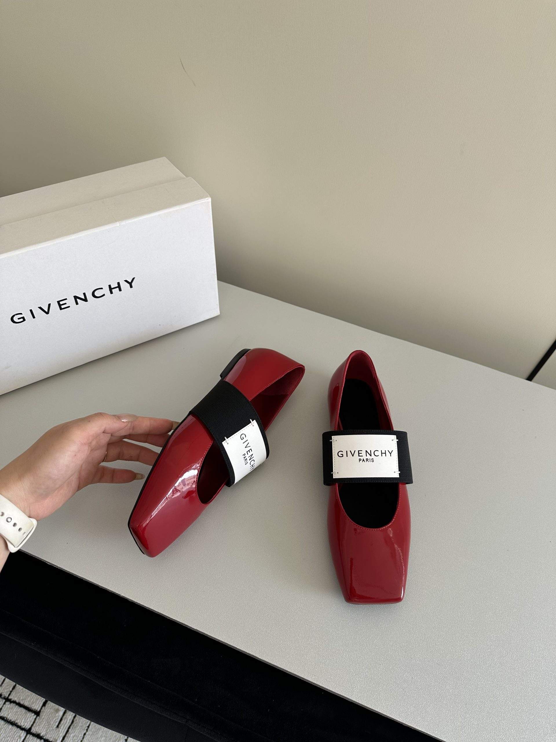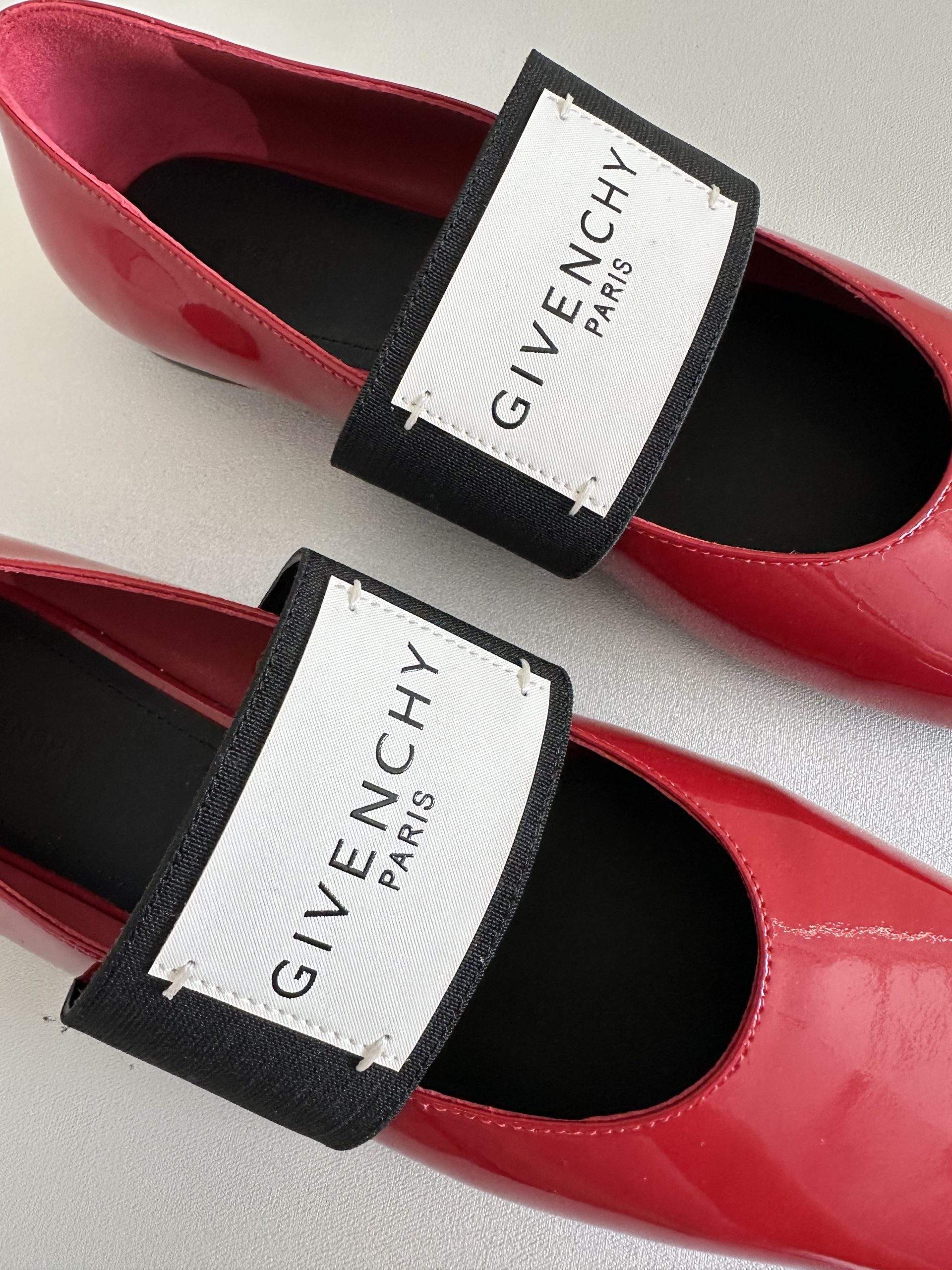 Premium Givenchy Sliced Square replica ballerinas in glossy patent leather, combining high-end craftsmanship with comfort and modern style.