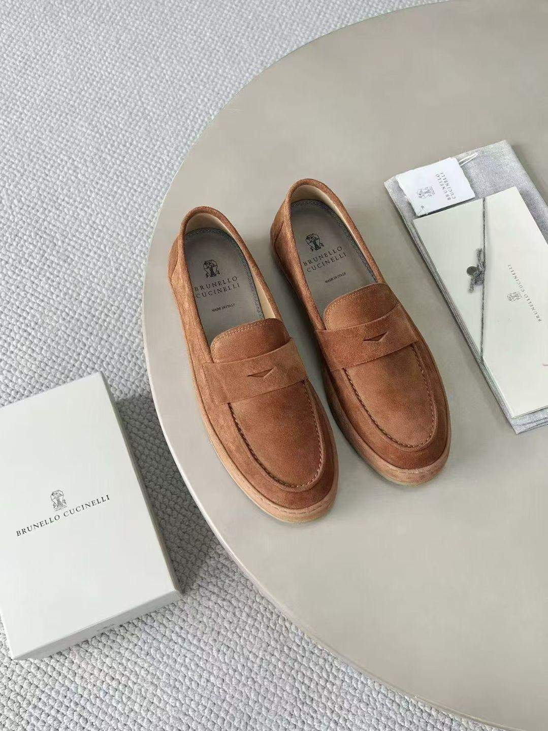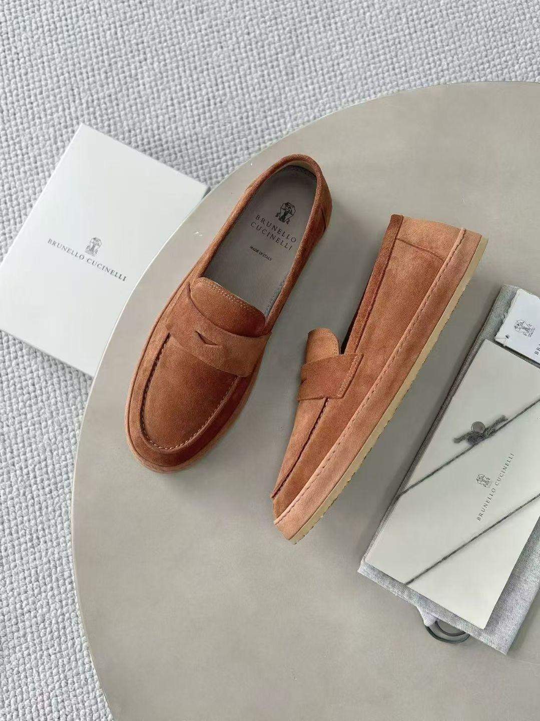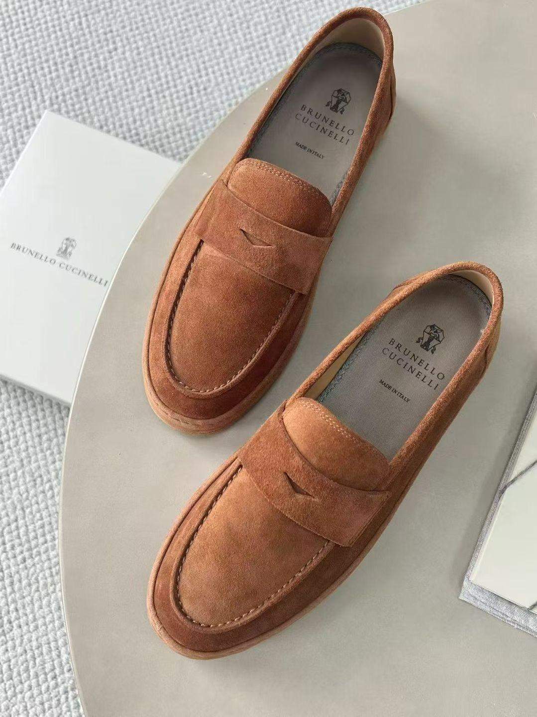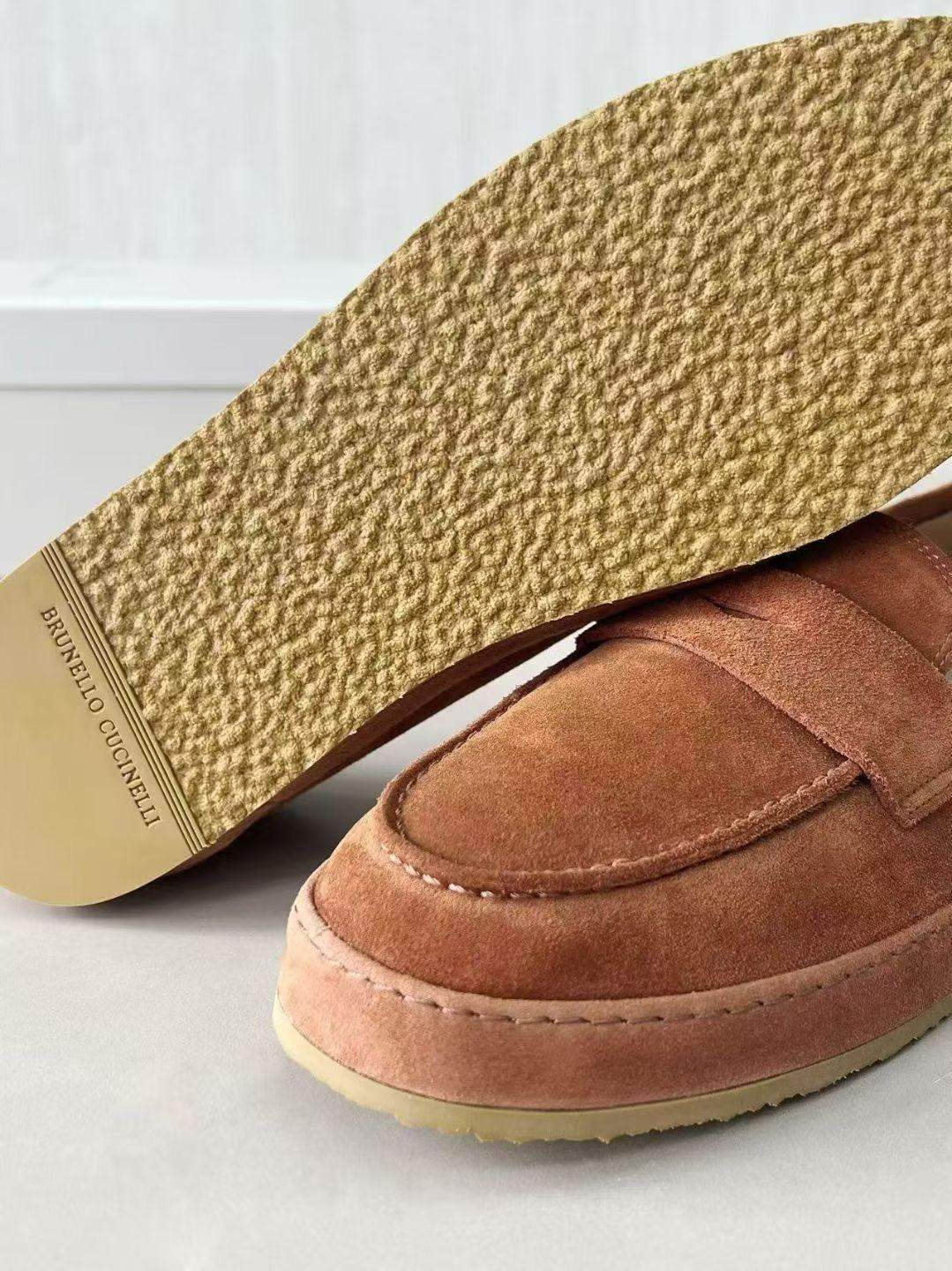 The Deluxe Brunello Cucinelli Washed Suede Replica Loafer Sneakers combine loafer elegance with sneaker comfort in a refined washed suede design.