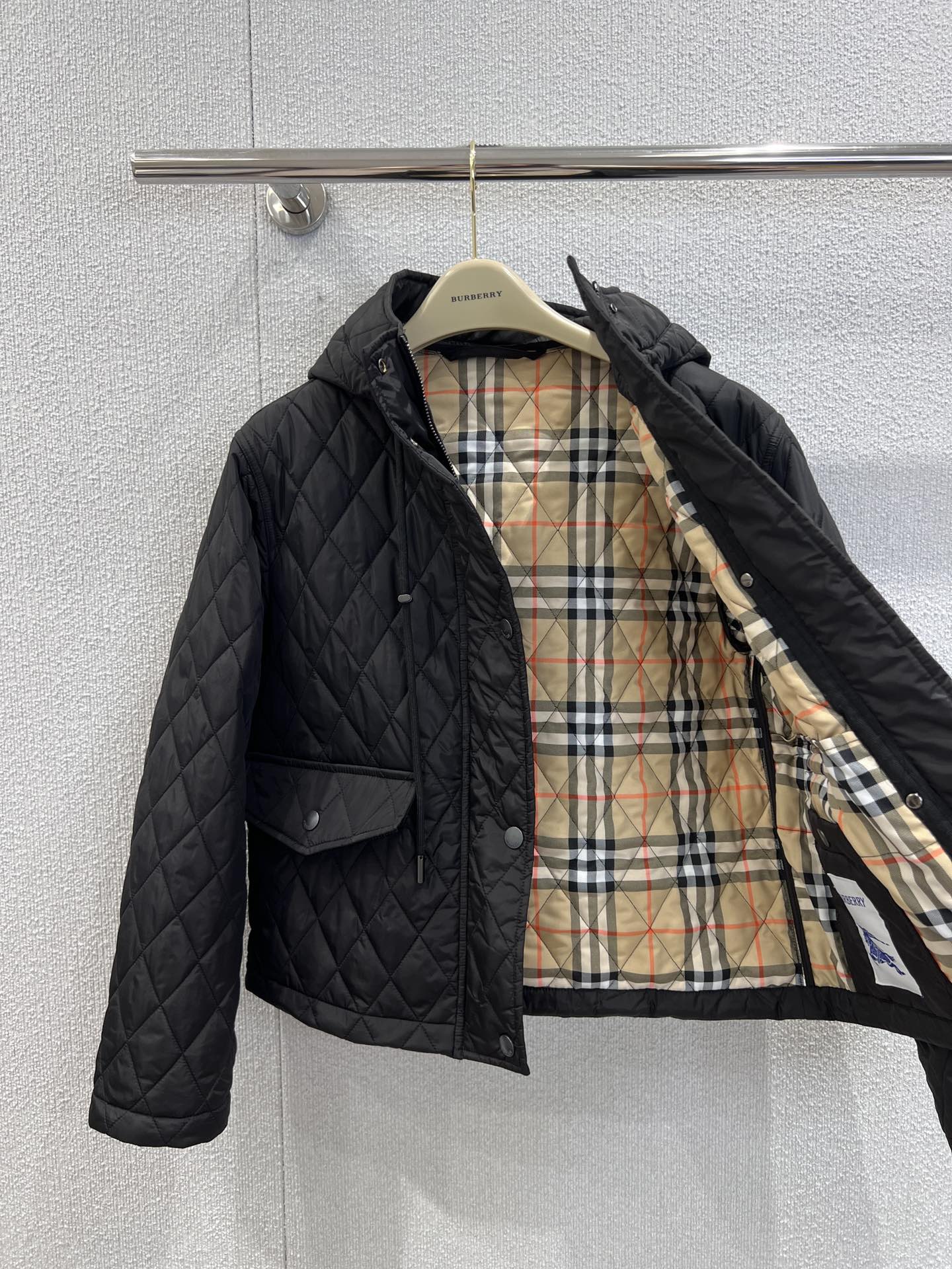The Deluxe Burberry Cropped Quilted Nylon Hooded Replica Jacket is crafted with premium nylon and detailed with elegant quilting for a luxury-inspired look. This replica Burberry jacket features a cropped silhouette and an attached hood, blending modern style with everyday practicality. Lightweight yet durable, it is perfect for layering over casual or semi-formal outfits. Designed with fine stitching and premium craftsmanship, this Burberry replica quilted jacket delivers comfort, warmth, and timeless fashion. Elevate your wardrobe with this hgh-quality replica Burberry jacket, ideal for stylish city looks or casual wear.