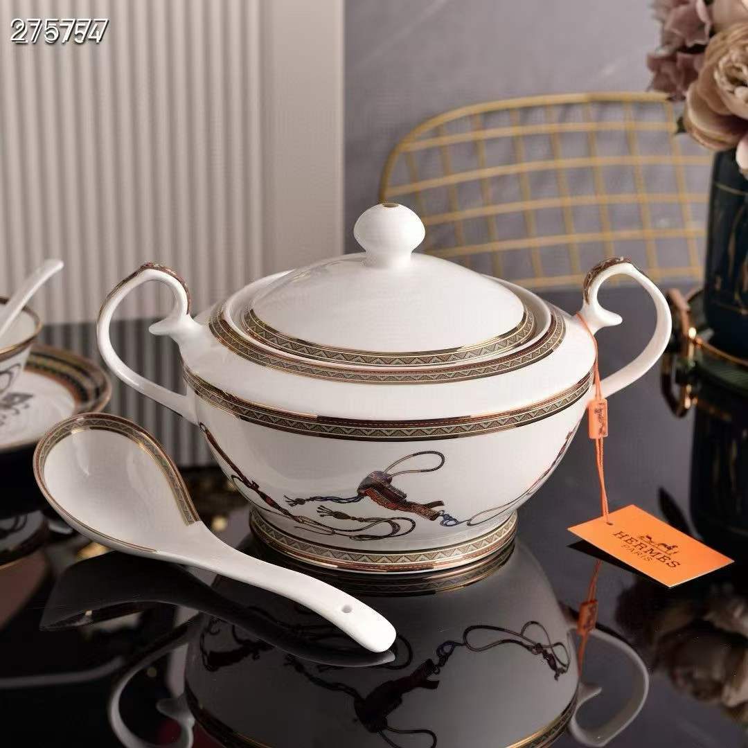 Add luxury and elegance to your dining table with the Deluxe Hermes Cheval d’Orient Porcelain Replica Dinnerware Set. This high-quality replica dinnerware takes inspiration from Hermès’ famous Cheval d’Orient design, known for its vibrant colors and fine detailing. Each porcelain piece shows beautiful horse motifs and rich gold accents that reflect Hermès’ signature artistry. The set combines classic beauty with modern craftsmanship, creating a refined table setting for any occasion. Perfect for collectors, dinner hosts, or anyone who loves luxury replica tableware with timeless style.