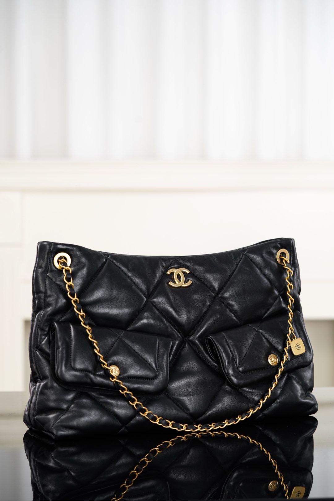 Deluxe Shiny Lambskin Replica Shopping Bag. A high quality replica handbag with polished lambskin, spacious design, and timeless style.