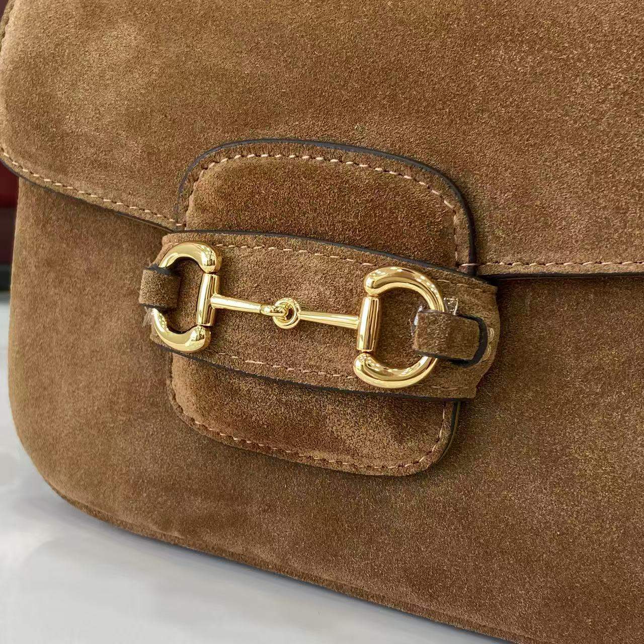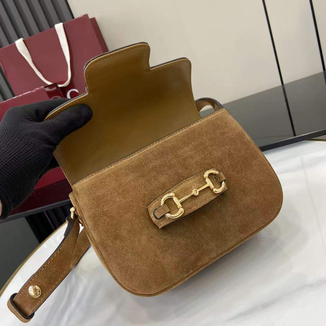 The Elite Gucci Horsebit 1955 Aura Mini Replica Shoulder Bag combines iconic Horsebit detailing with a chic mini silhouette. Its structured shape, polished hardware, and lightweight design make it a refined luxury-inspired accessory for any occasion.
