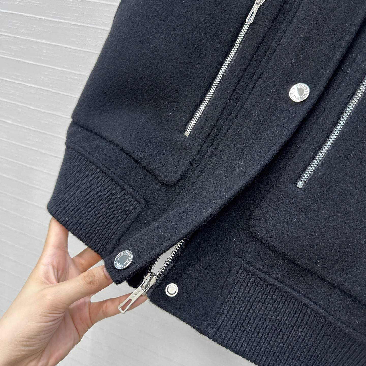 This elite replica bomber jacket is crafted from durable materials that feel smooth and structured. The fabric maintains its shape while providing comfort for daily wear. In addition, the stitching is precise and neat, showcasing the premium craftsmanship behind this replica outerwear. As a result, it closely mirrors the refined aesthetic of the original Hermès design.