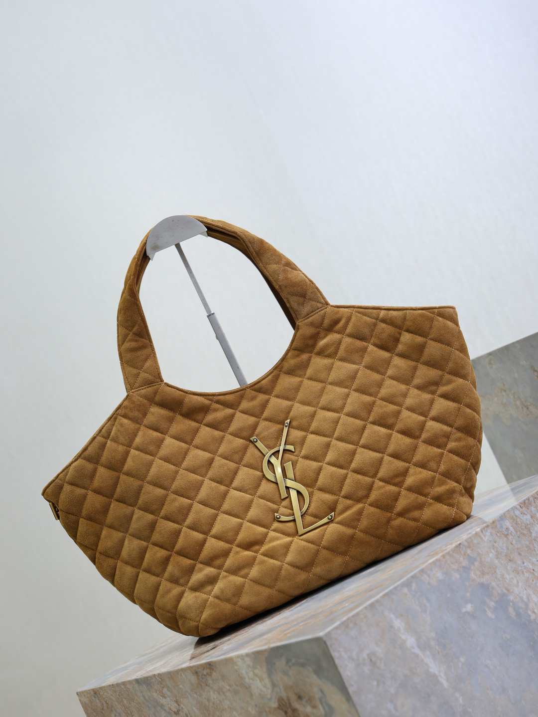 Elite YSL Icare Suede Replica Bag crafted in quilted suede with signature logo and a spacious, soft structured silhouette.