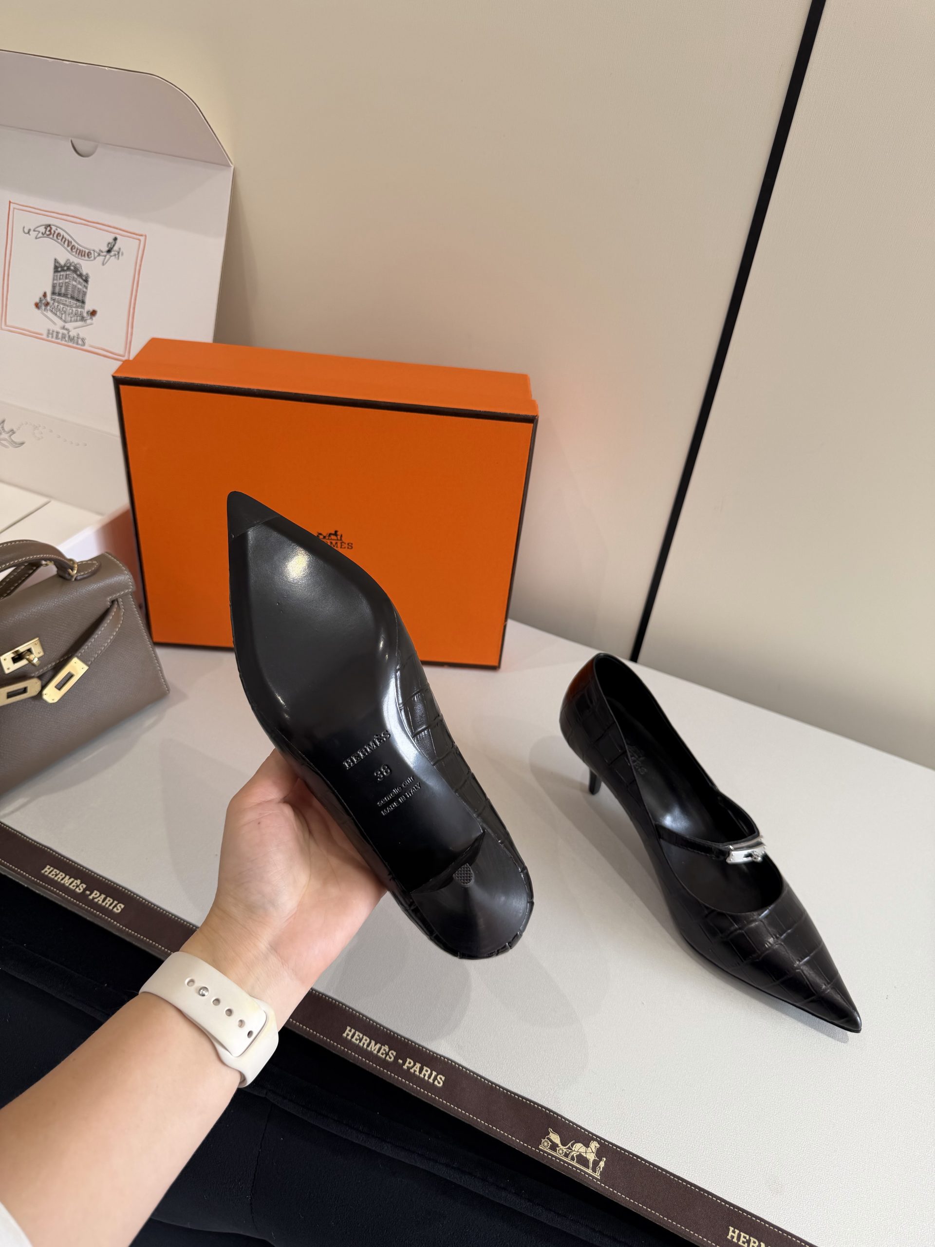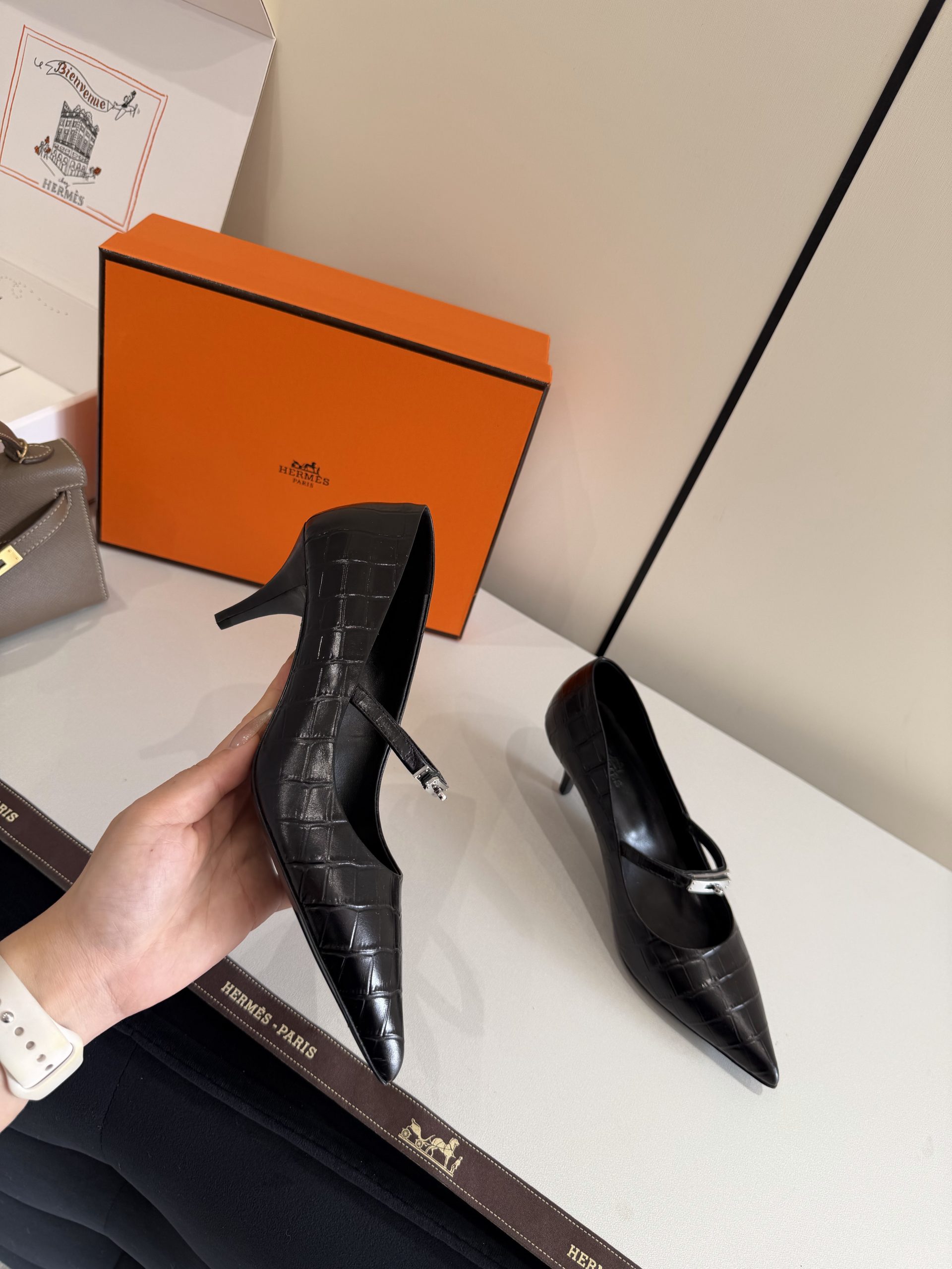 In conclusion, the Hermes Majeste Replica Pump blends classic design, comfort, and sophisticated detailing. With its pointed silhouette, iconic buckle accent, and balanced heel height, this exact-copy replica delivers refined style for modern wardrobes. Whether styled for work, formal events, or evening outings, it adds a timeless luxury-inspired finish to any outfit.