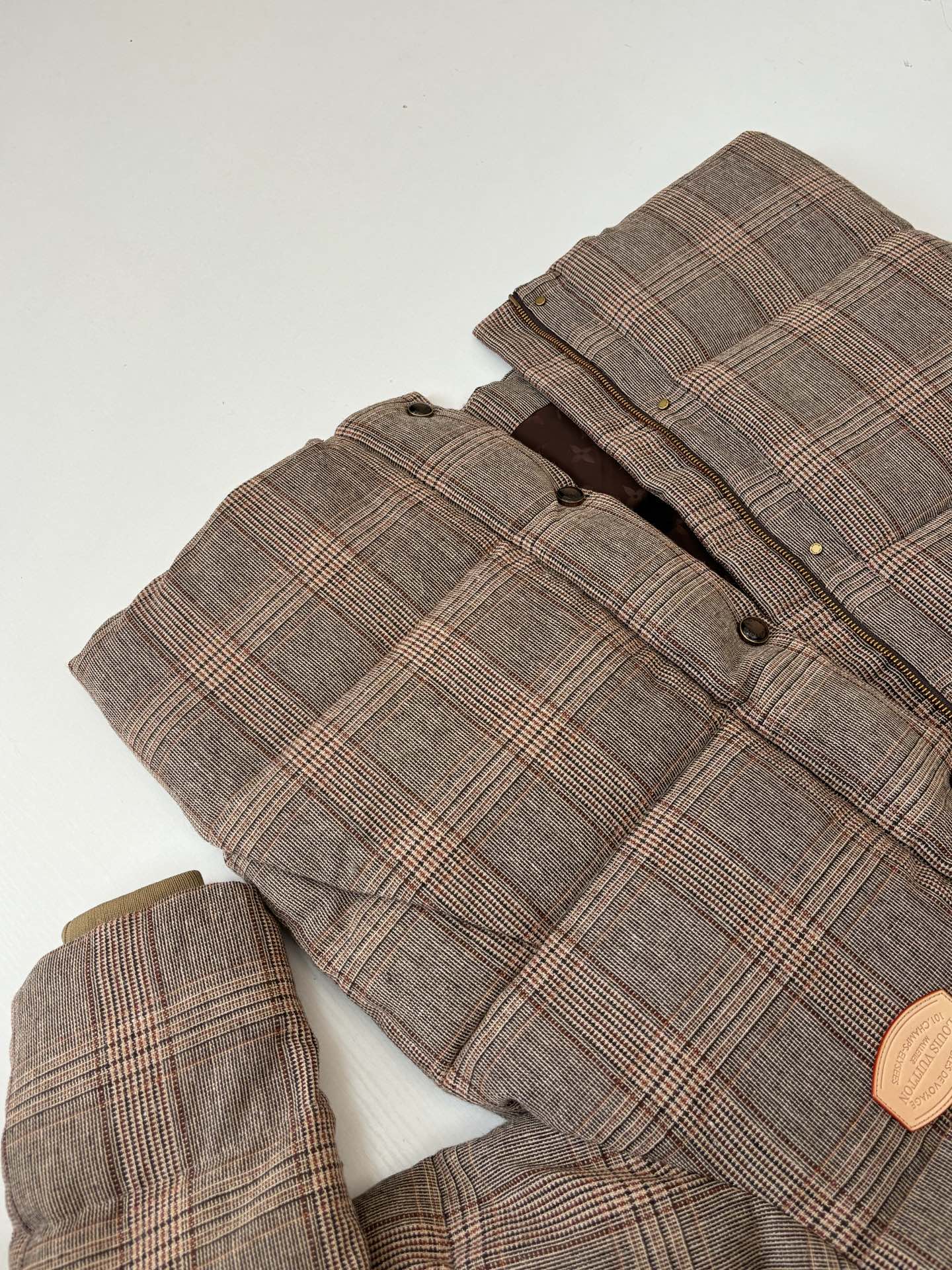 The Exact Copy Louis Vuitton Tweed Replica Down Blouson features tweed-effect fabric, soft down-style padding, and premium replica craftsmanship. It delivers warmth, comfort, and a modern luxury-inspired look for everyday wear.