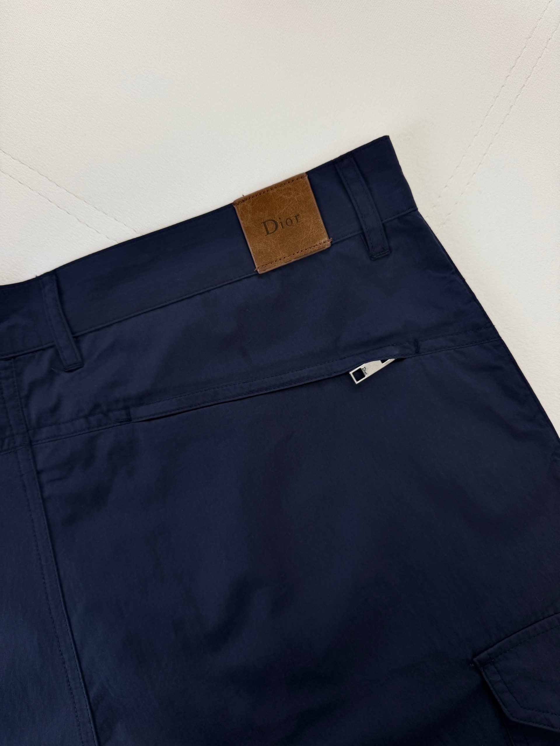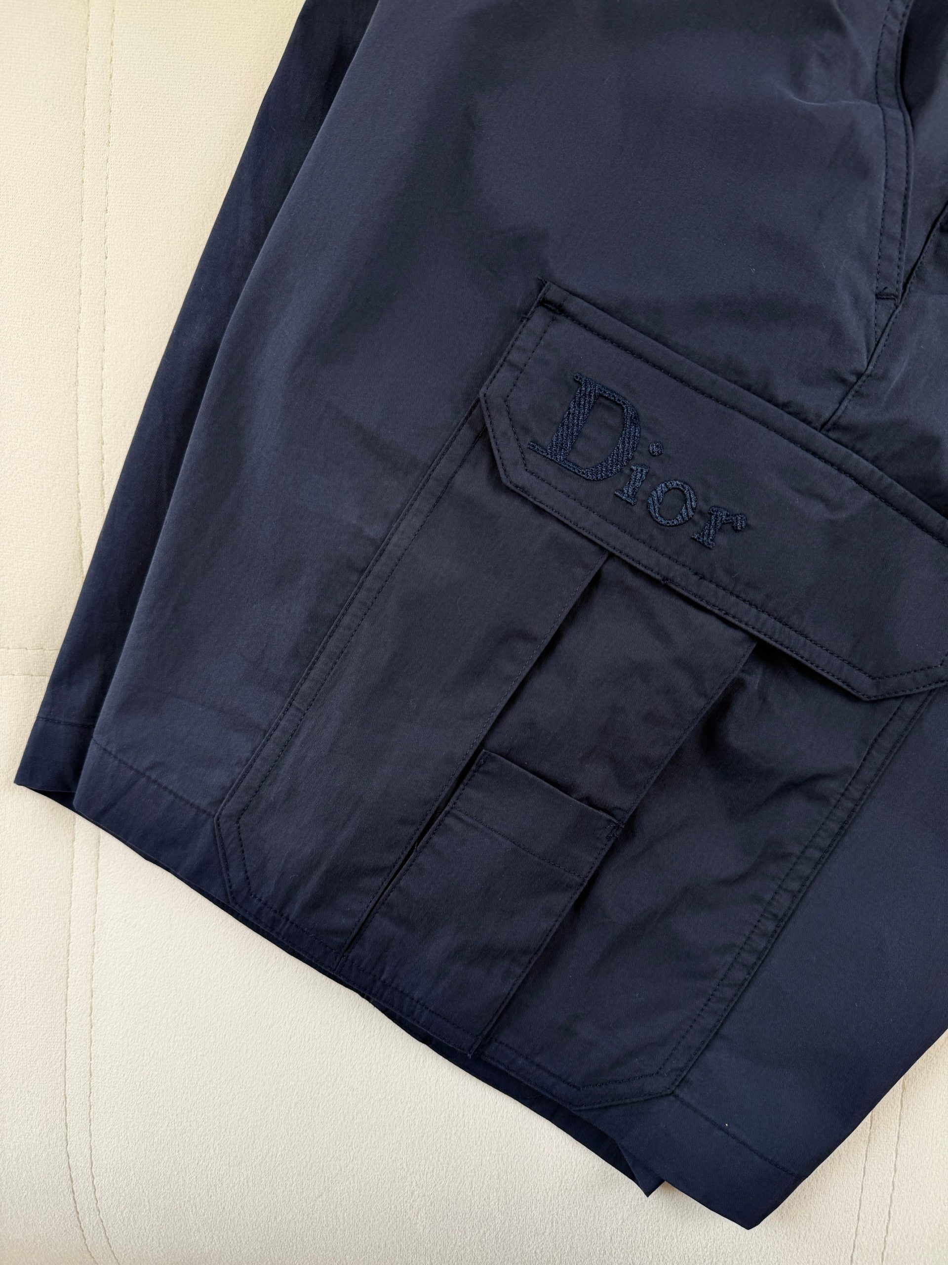 Functional design is central to the Dior Cargo Shorts. They include multiple cargo pockets along the sides, as well as traditional front and back pockets. These compartments are not only practical but also contribute to the overall visual structure of the shorts, giving them a layered and technical look.