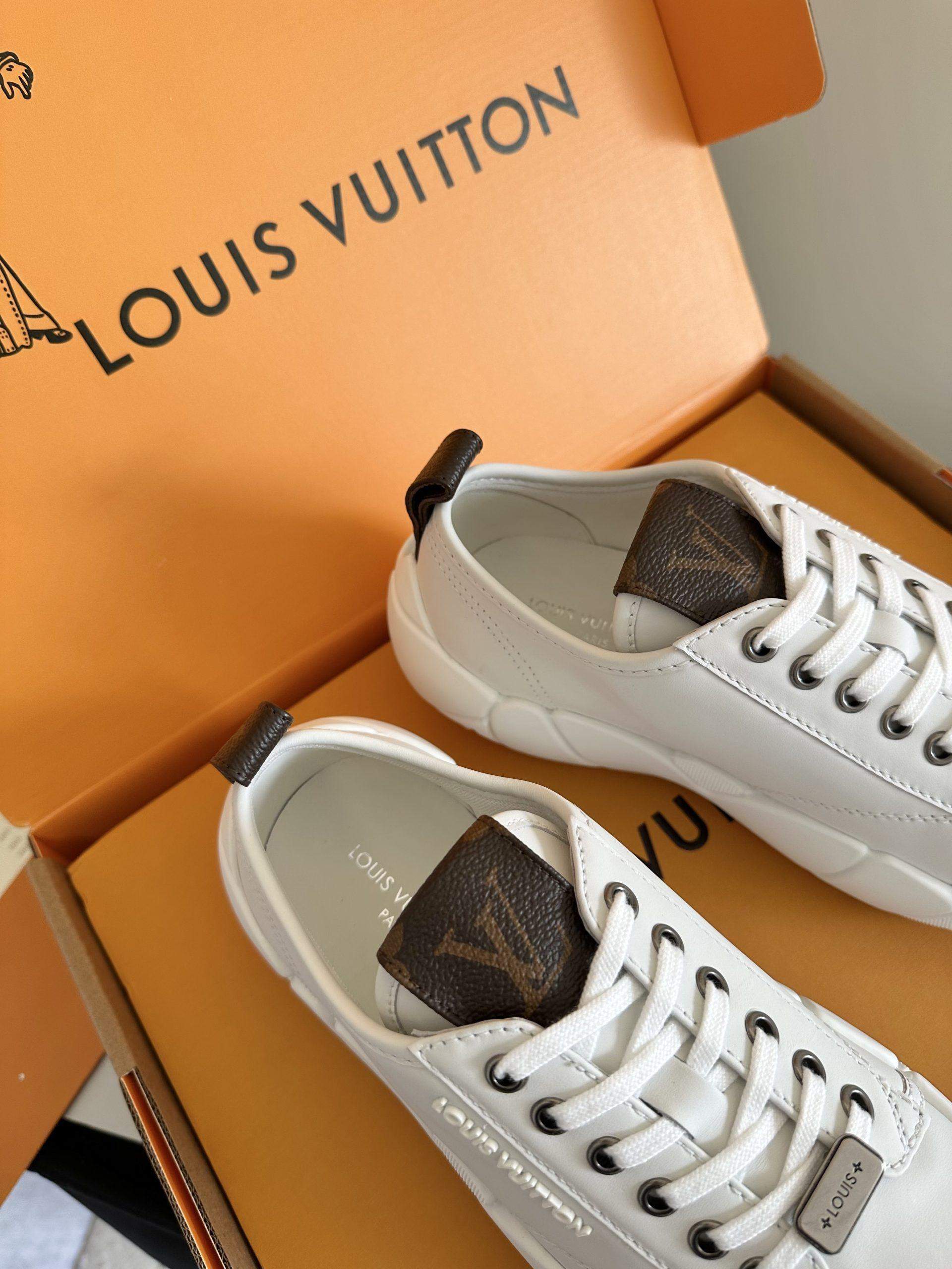 Made from premium replica leather and mesh, the upper delivers a sleek finish with breathable panels for all-day comfort. The low-top silhouette features a distinctive layered design, showcasing Louis Vuitton-inspired aesthetics that stand out in any outfit.