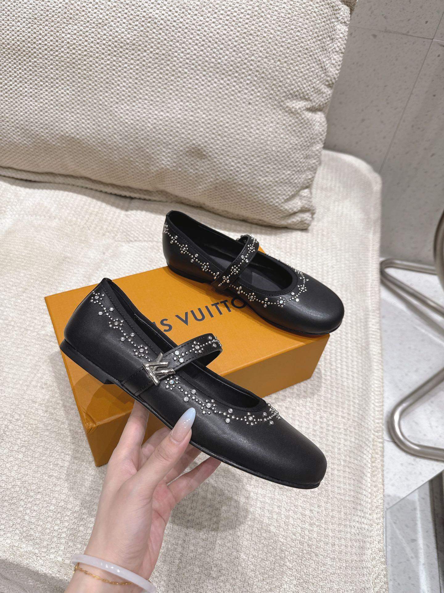 The Finest Louis Vuitton Romy Replica Flat Ballerina is a refined and timeless shoe designed for everyday elegance. Crafted from premium calf leather, this replica ballerina flat features a sleek pointed toe, soft lining for comfort, and a delicate LV-inspired detail on the upper. Its lightweight sole ensures all-day wearability, while the minimalist design makes it versatile enough to pair with dresses, skirts, or tailored trousers. A high-quality replica Louis Vuitton ballerina that blends sophistication, comfort, and style in one iconic piece.