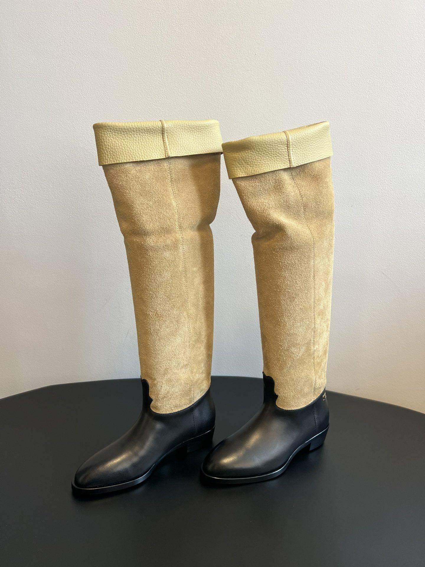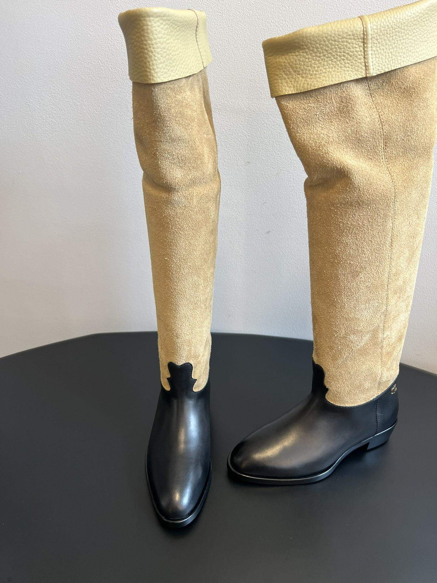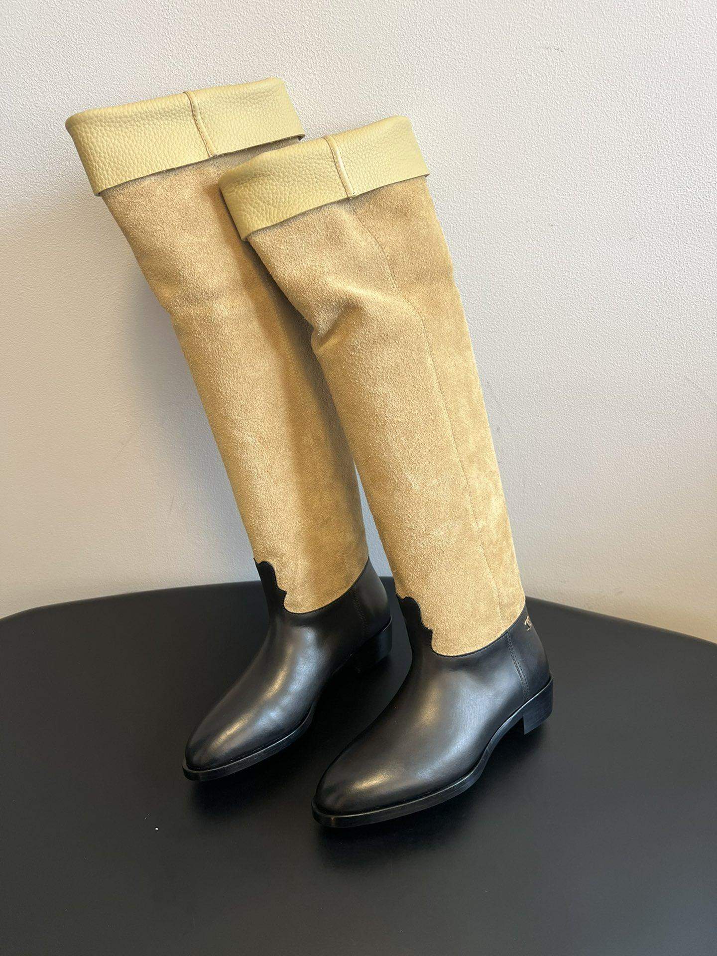 High-End Quality Suede Calfskin & Calfskin Thigh Replica Boots