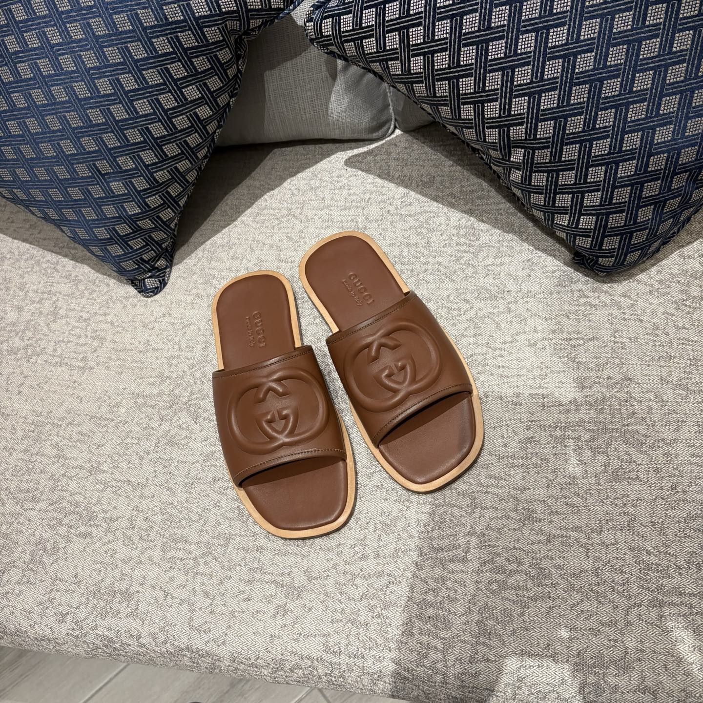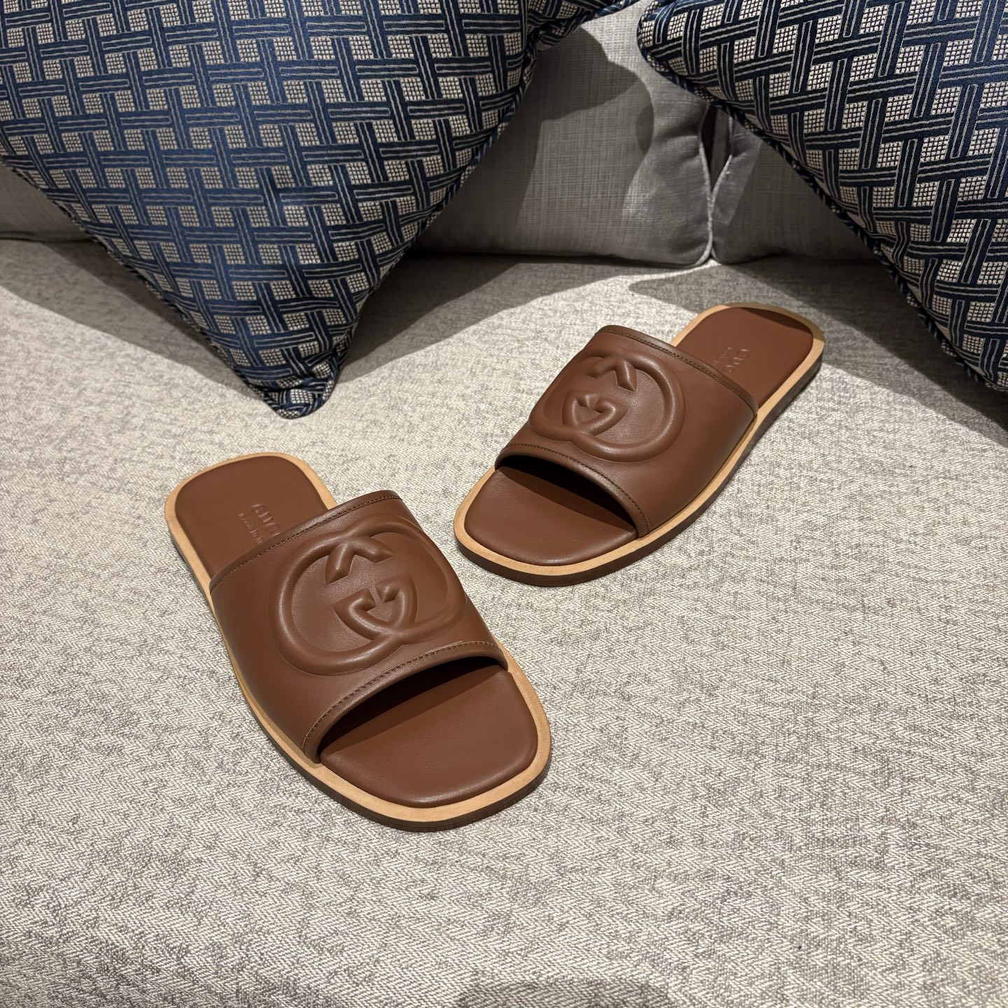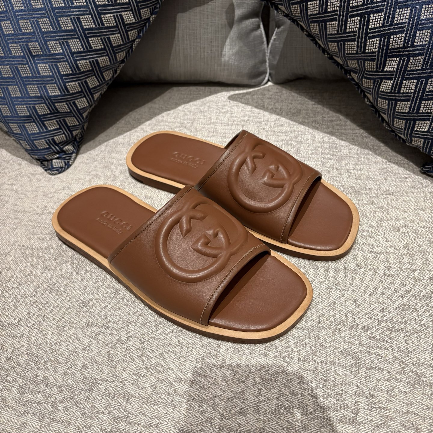 The Gucci Replica Slide Sandals feature a wide supportive strap that provides a secure and comfortable fit. The strap gently holds the foot in place while allowing easy slip-on convenience. Slide sandals remain popular for their practicality because they require no laces or fastenings, making them quick and effortless to wear.
