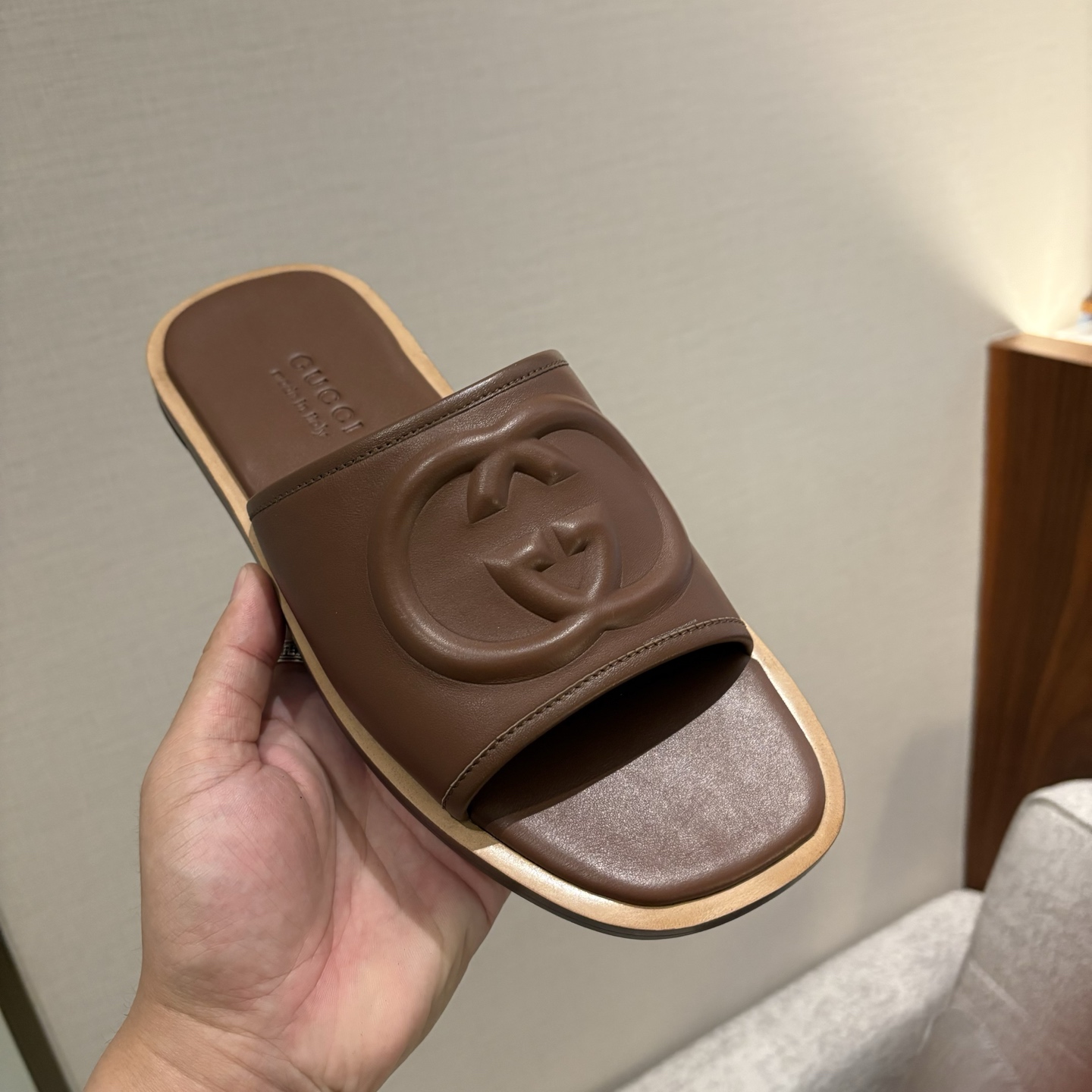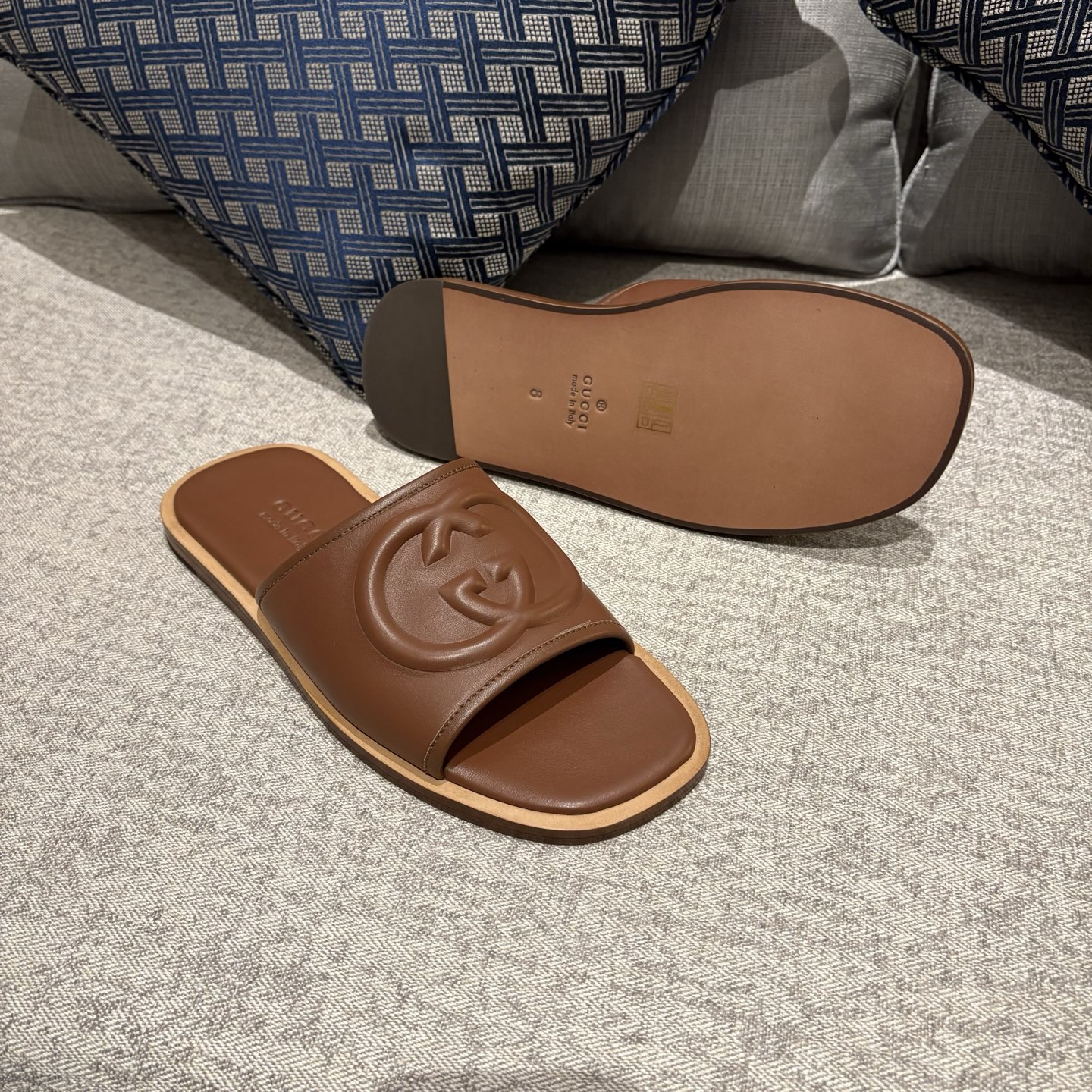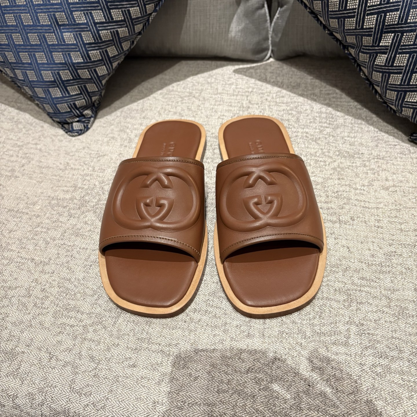 The Gucci Replica Slide Sandals feature a wide supportive strap that provides a secure and comfortable fit. The strap gently holds the foot in place while allowing easy slip-on convenience. Slide sandals remain popular for their practicality because they require no laces or fastenings, making them quick and effortless to wear.