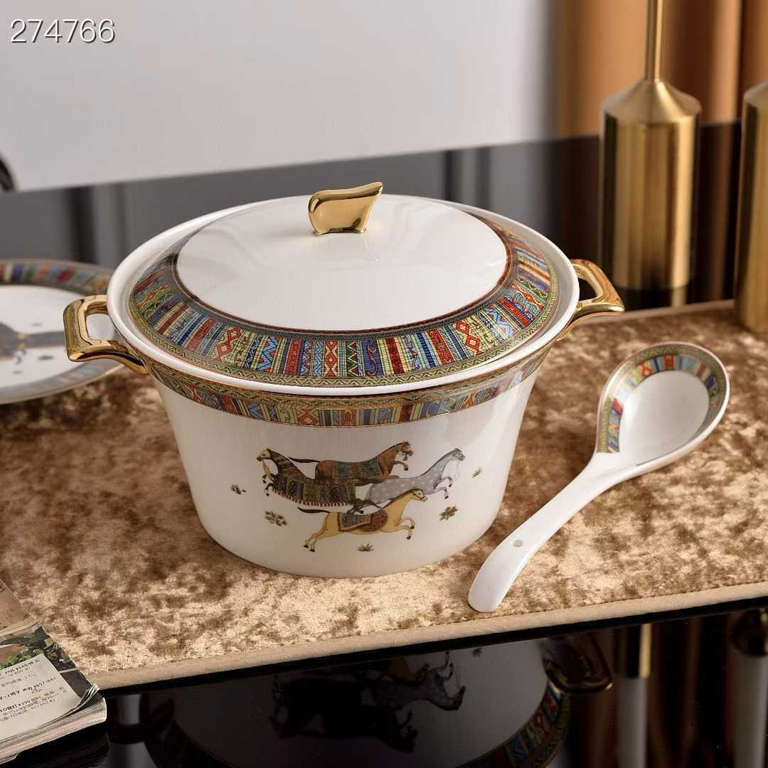 The Luxury Replica Hermes Cheval d’Orient Porcelain Dinnerware Set brings refined elegance to any table. Inspired by the Orient, each piece shows detailed horse motifs and golden accents. This high quality replica dinnerware uses fine porcelain for a smooth, luxurious finish. It’s perfect for collectors who love Hermes-inspired style. Add charm and sophistication to your dining with this beautiful Hermes replica dinnerware set.