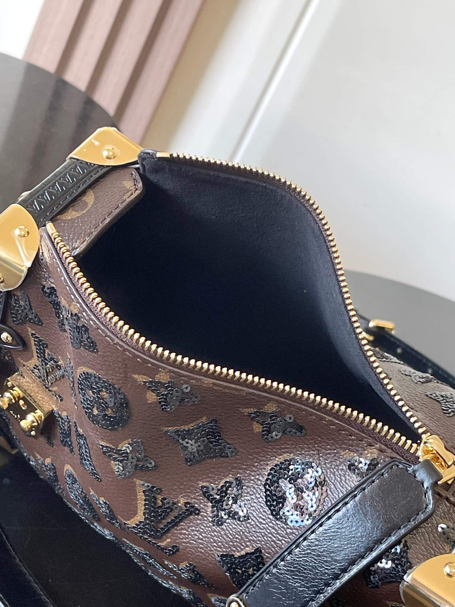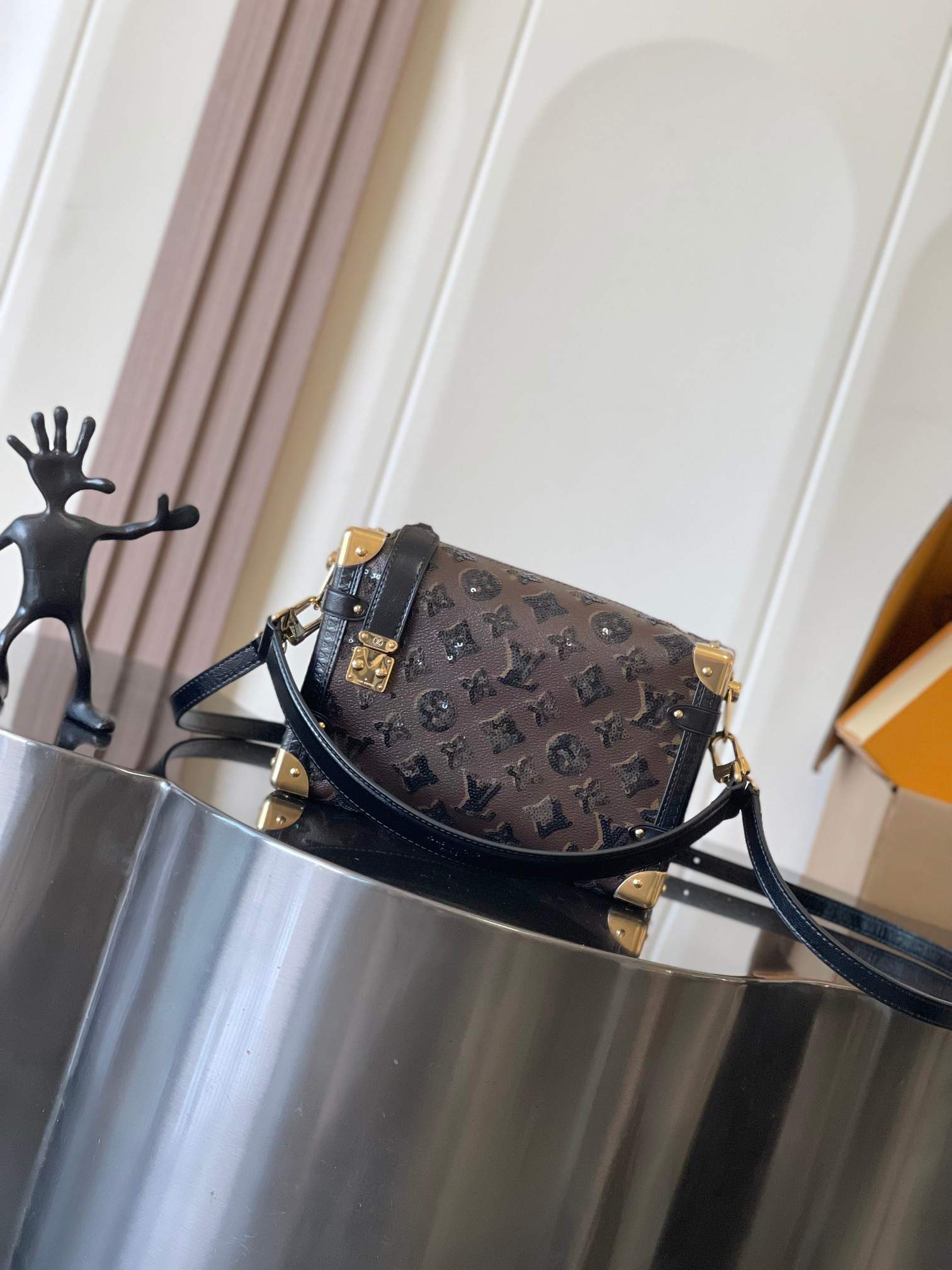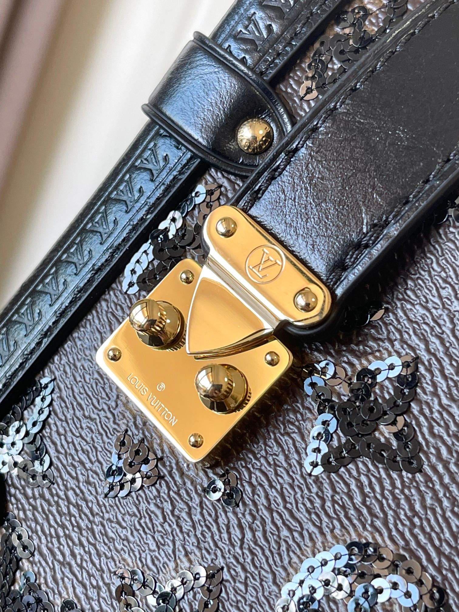 The Luxury Replica Louis Vuitton Side Trunk MM blends classic LV trunk heritage with modern glamour. Decorated with shimmering sequins, gold-toned hardware, and a chic braided chain, this replica offers a stylish transition from daytime outings to evening events.