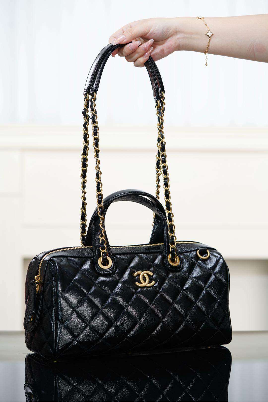 The Mirror Quality Large Replica Bowling Bag features premium leather, gold-tone hardware, and a spacious silhouette for luxury-inspired replica elegance.