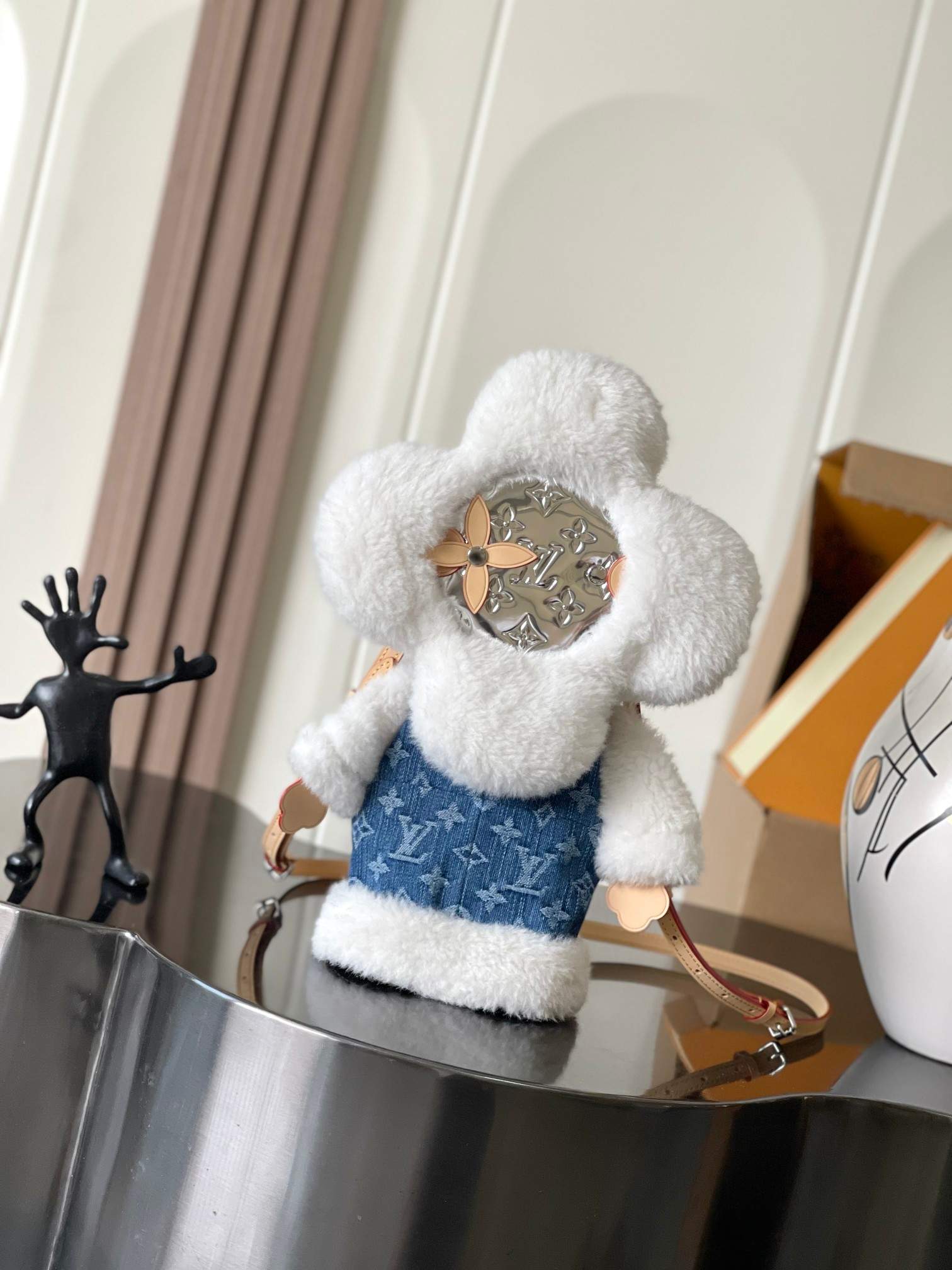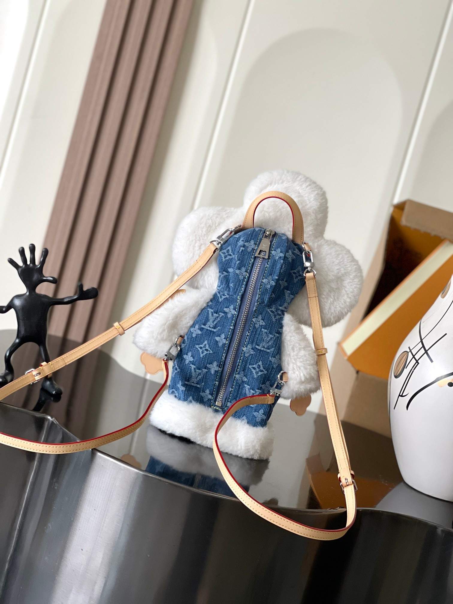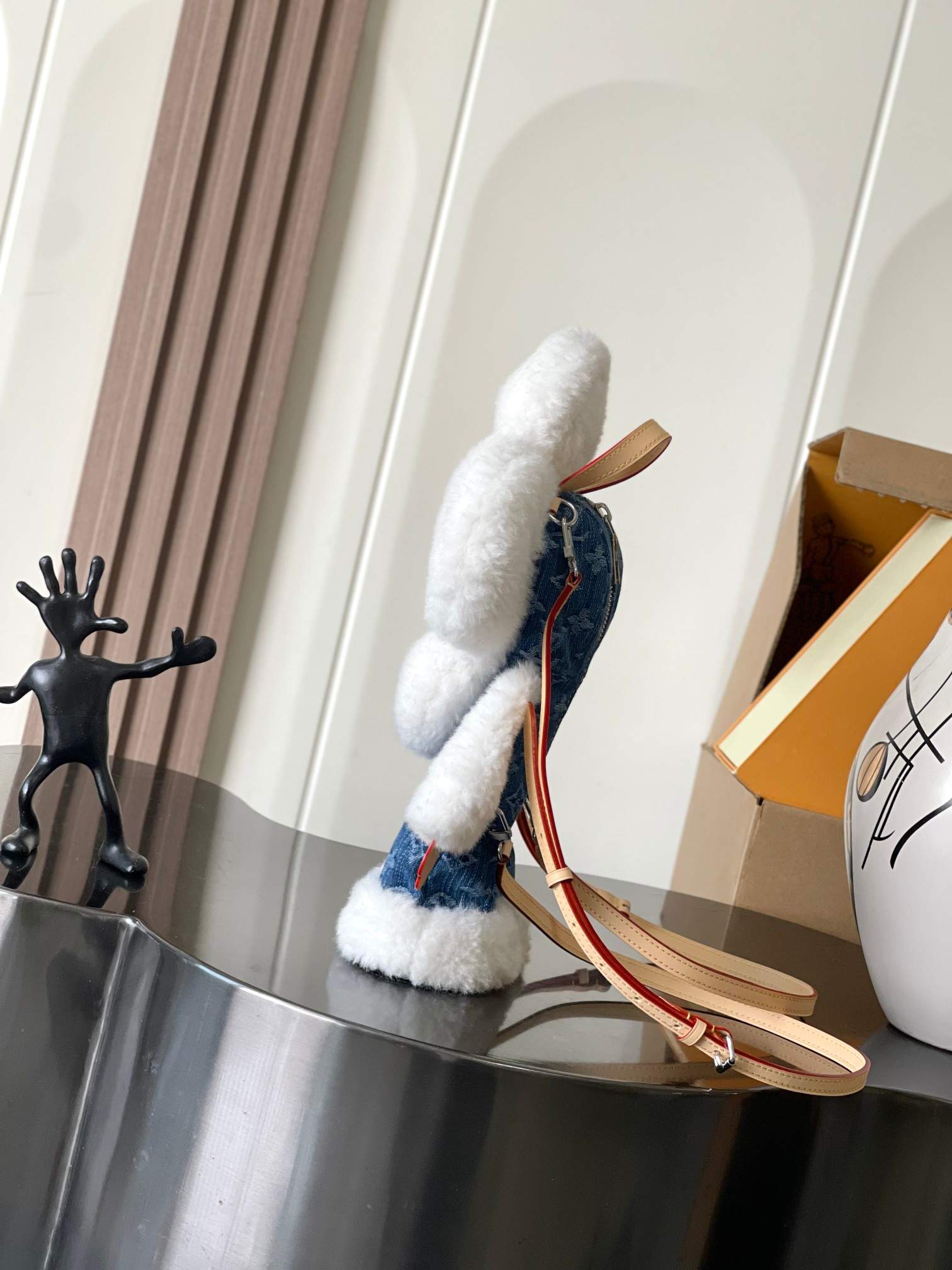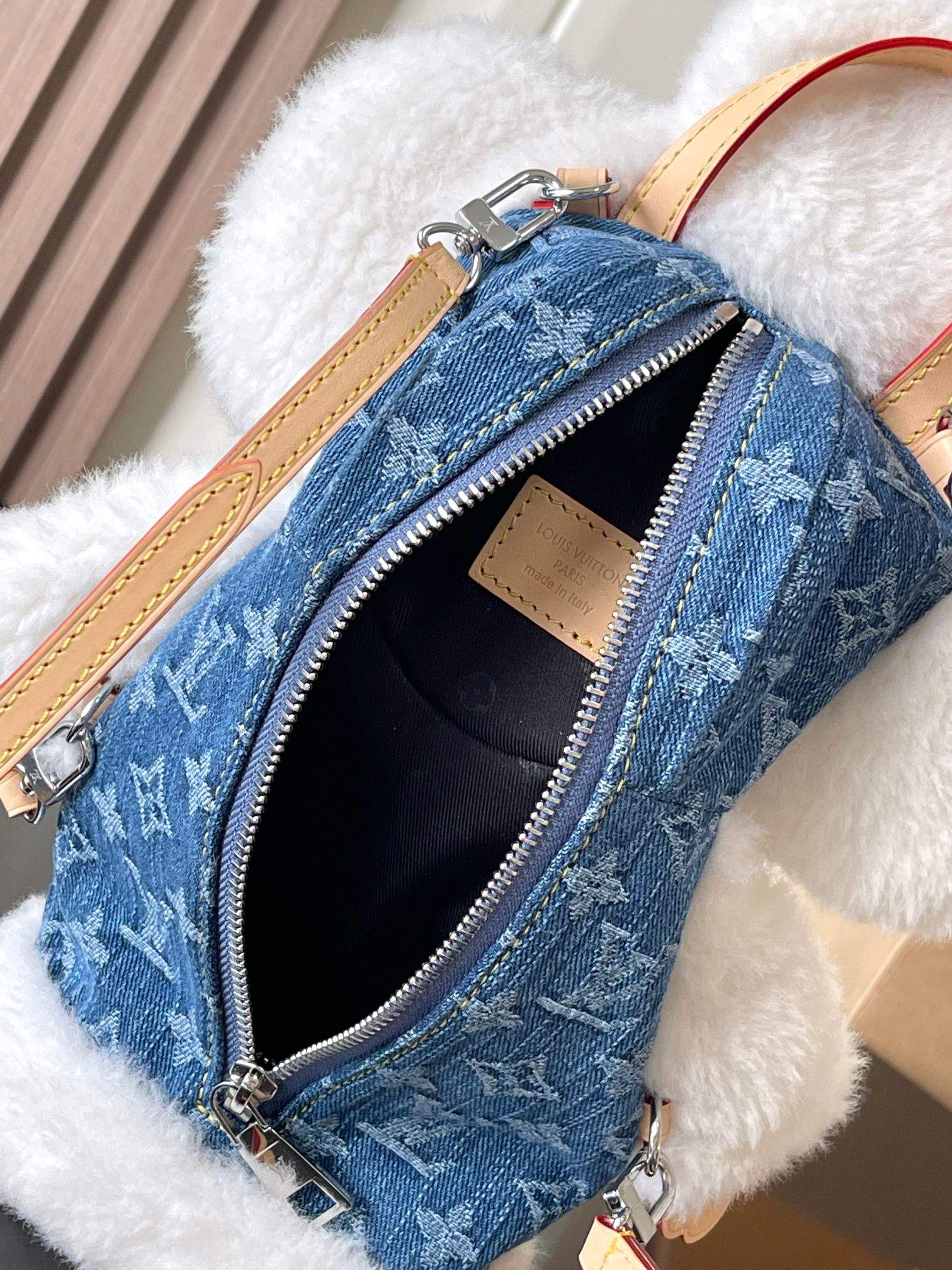 | Material | Merino shearling and denim |