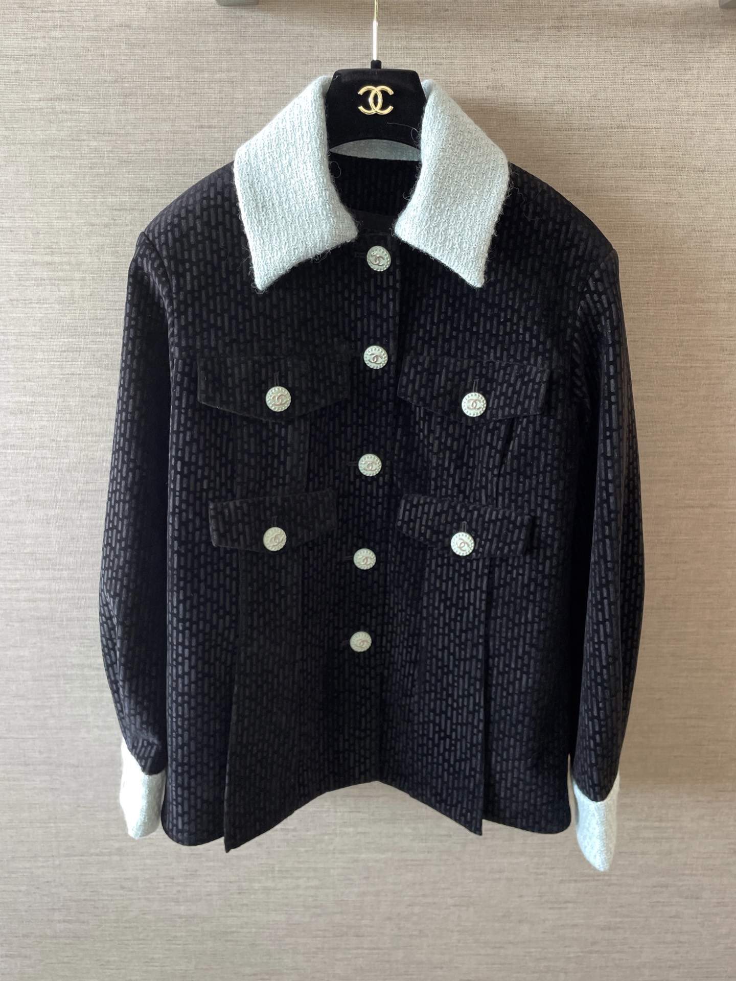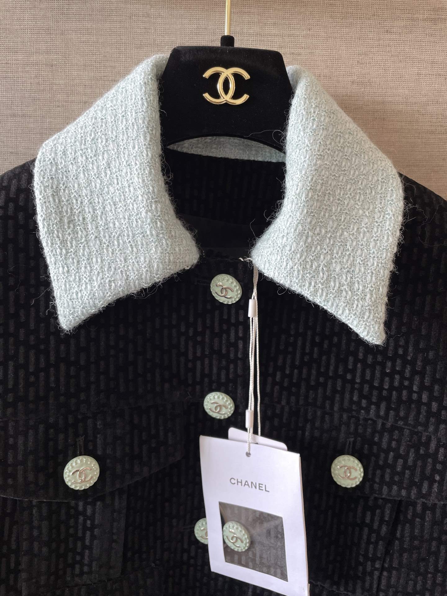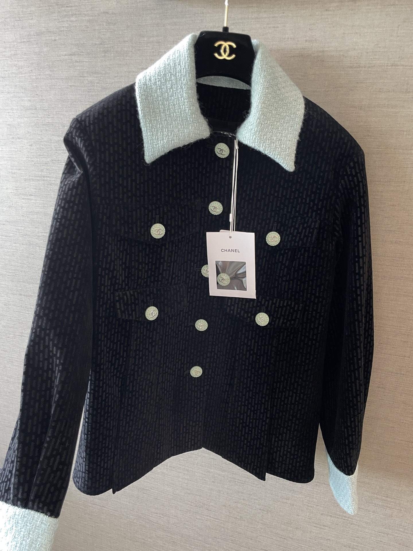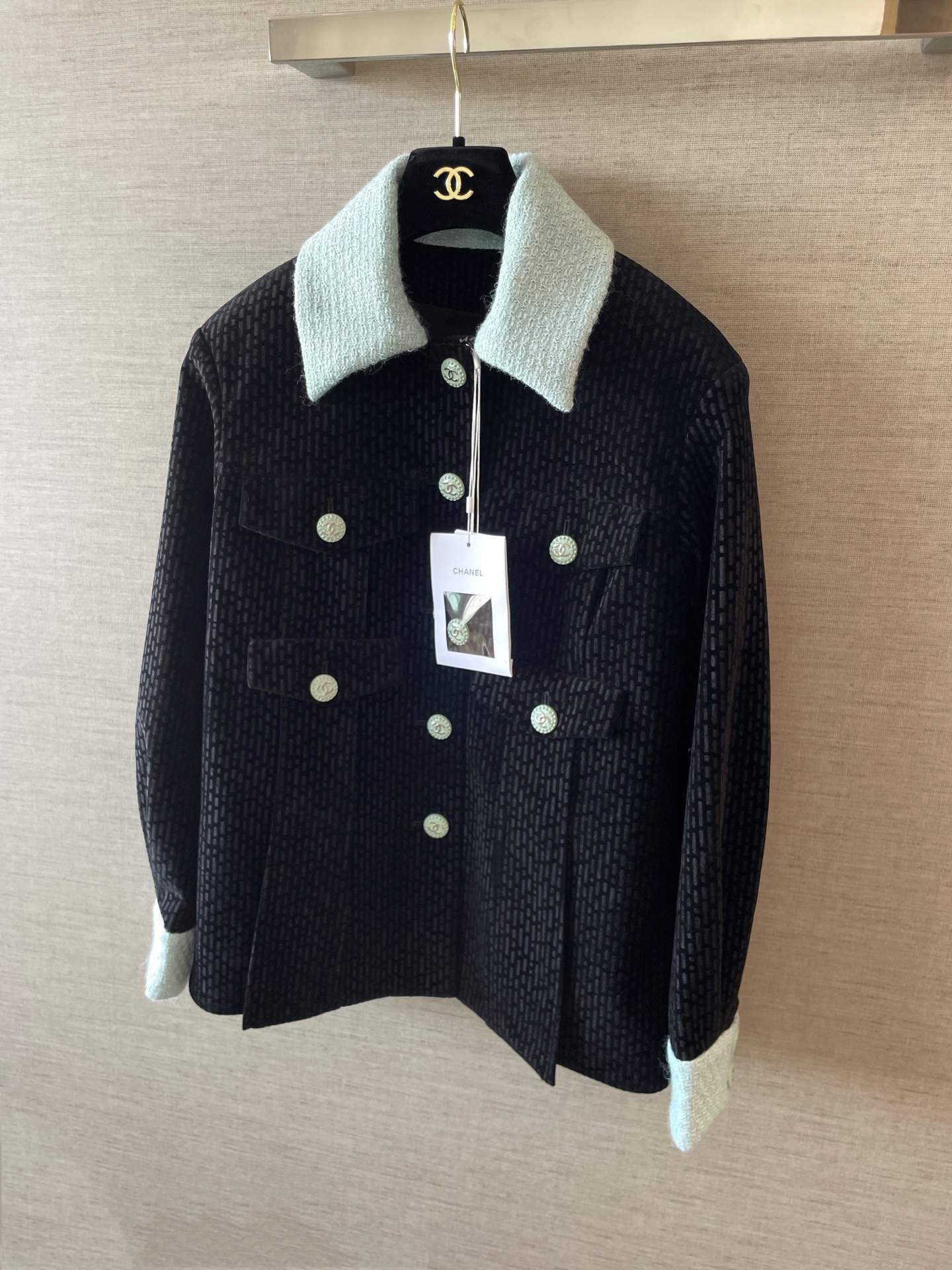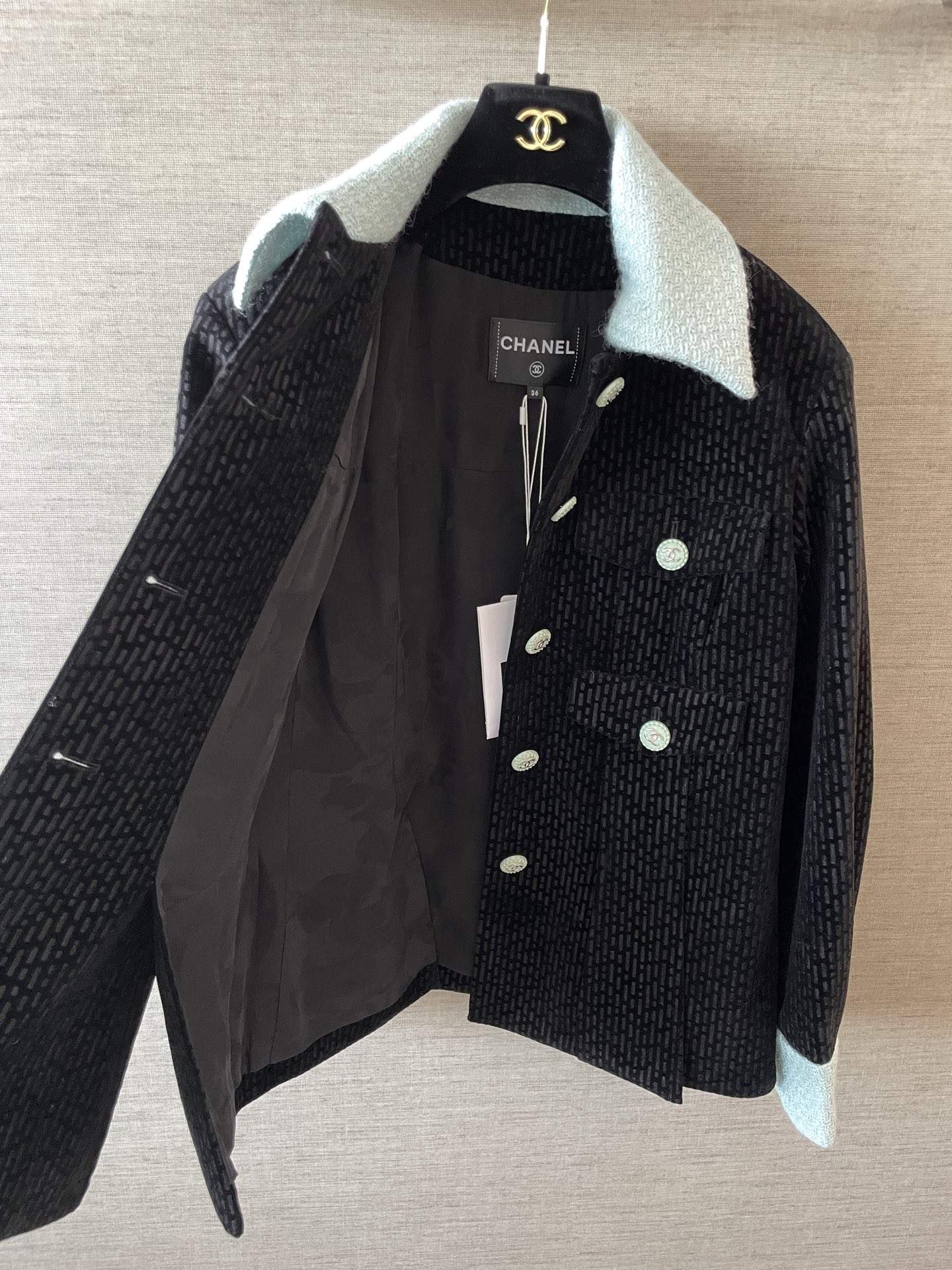 The velvet replica jacket features a tailored fit that flatters the body while maintaining comfortable mobility. Its clean lines, front closure, and subtle accents ensure a versatile look suitable for both casual and formal occasions. The combination of velvet and tweed creates a modern, fashion-forward style that elevates any outfit.