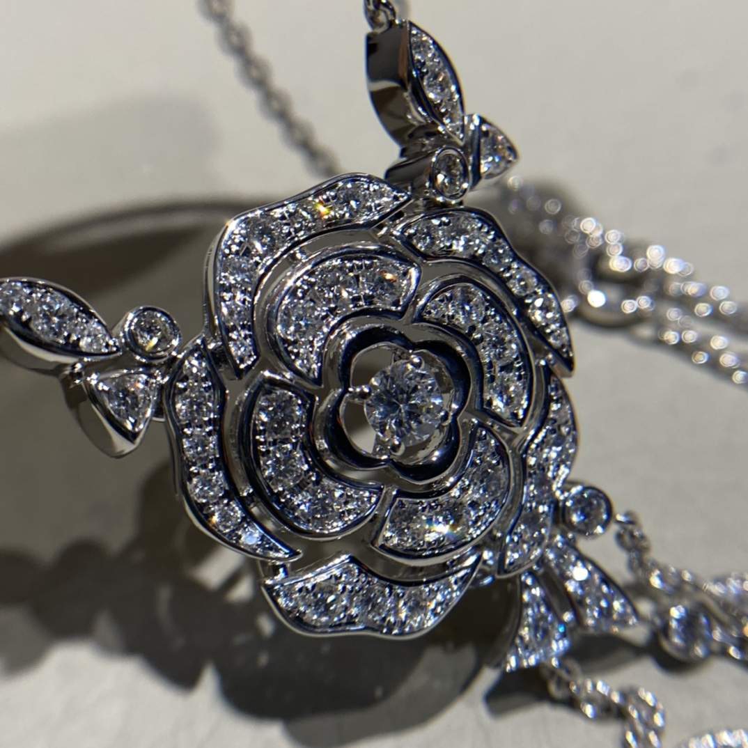 Add elegance to your look with this Bouton De Camelia transformable replica necklace — luxury design and versatile styling options.