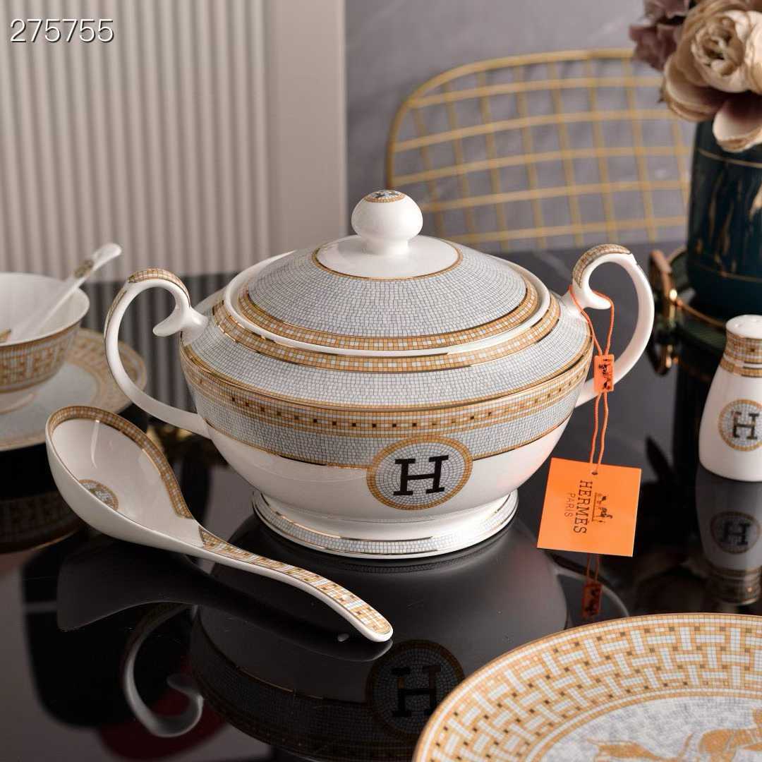Transform your dining table with the Premium Hermes Mosaique au 24 Porcelain Replica Dinnerware Set. This luxury replica dinnerware captures the signature Hermès mosaic design with stunning gold or platinum details. Each piece is made from high-quality porcelain for a smooth finish and lasting shine. The geometric pattern reflects elegance and Parisian charm in every meal. This Hermes-inspired replica set suits collectors, dinner hosts, and anyone who loves refined tableware. Impress your guests and enjoy the beauty of Hermès craftsmanship at an affordable price.