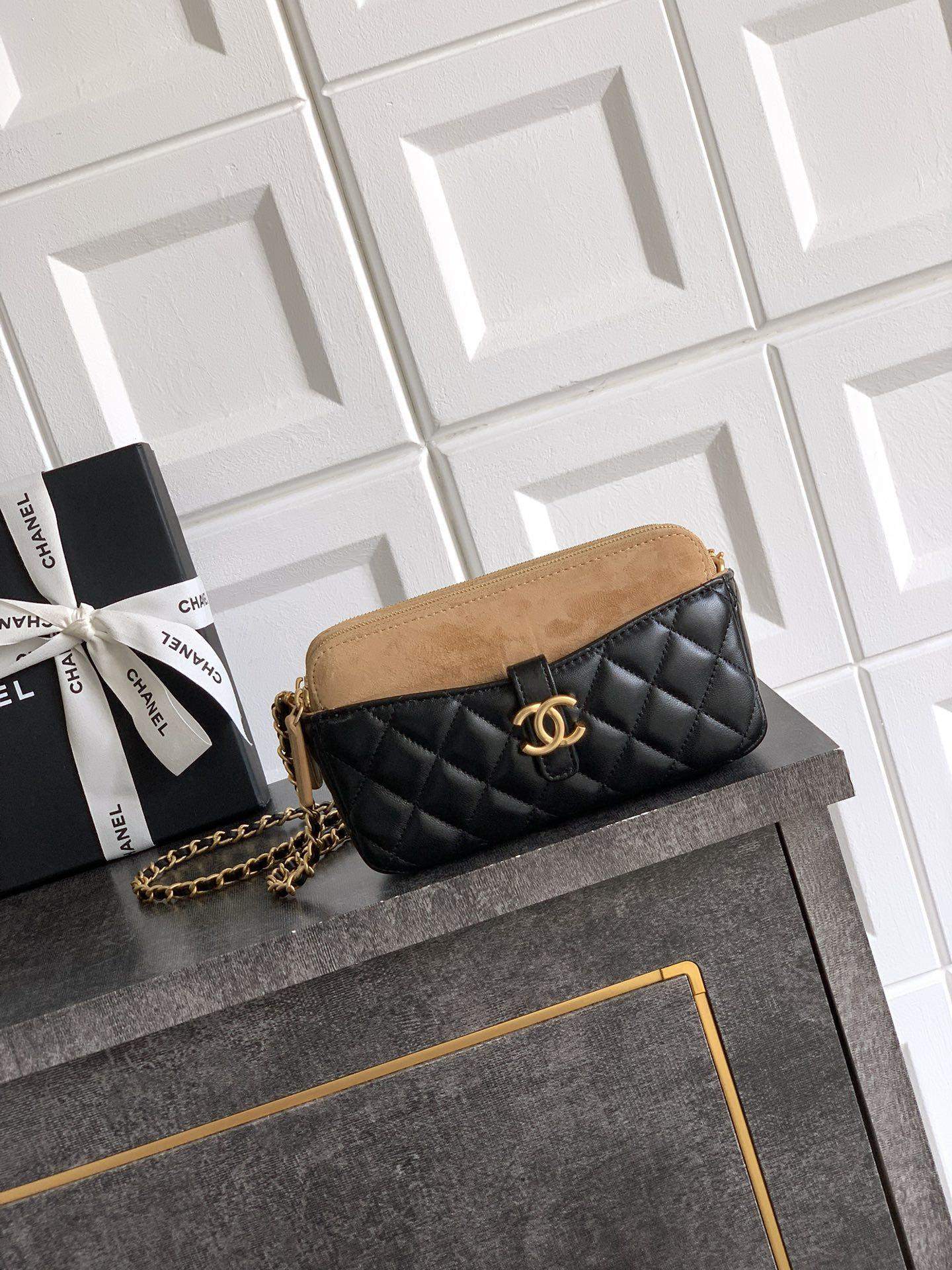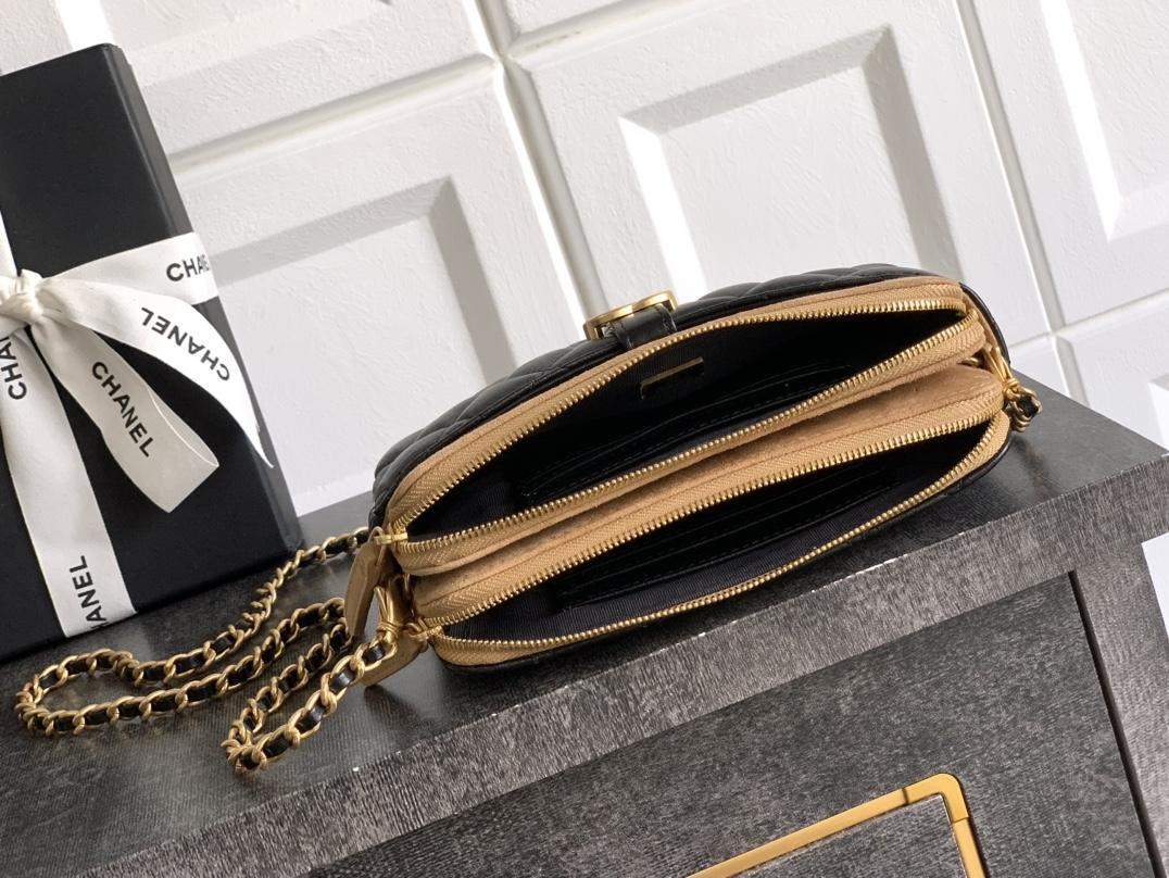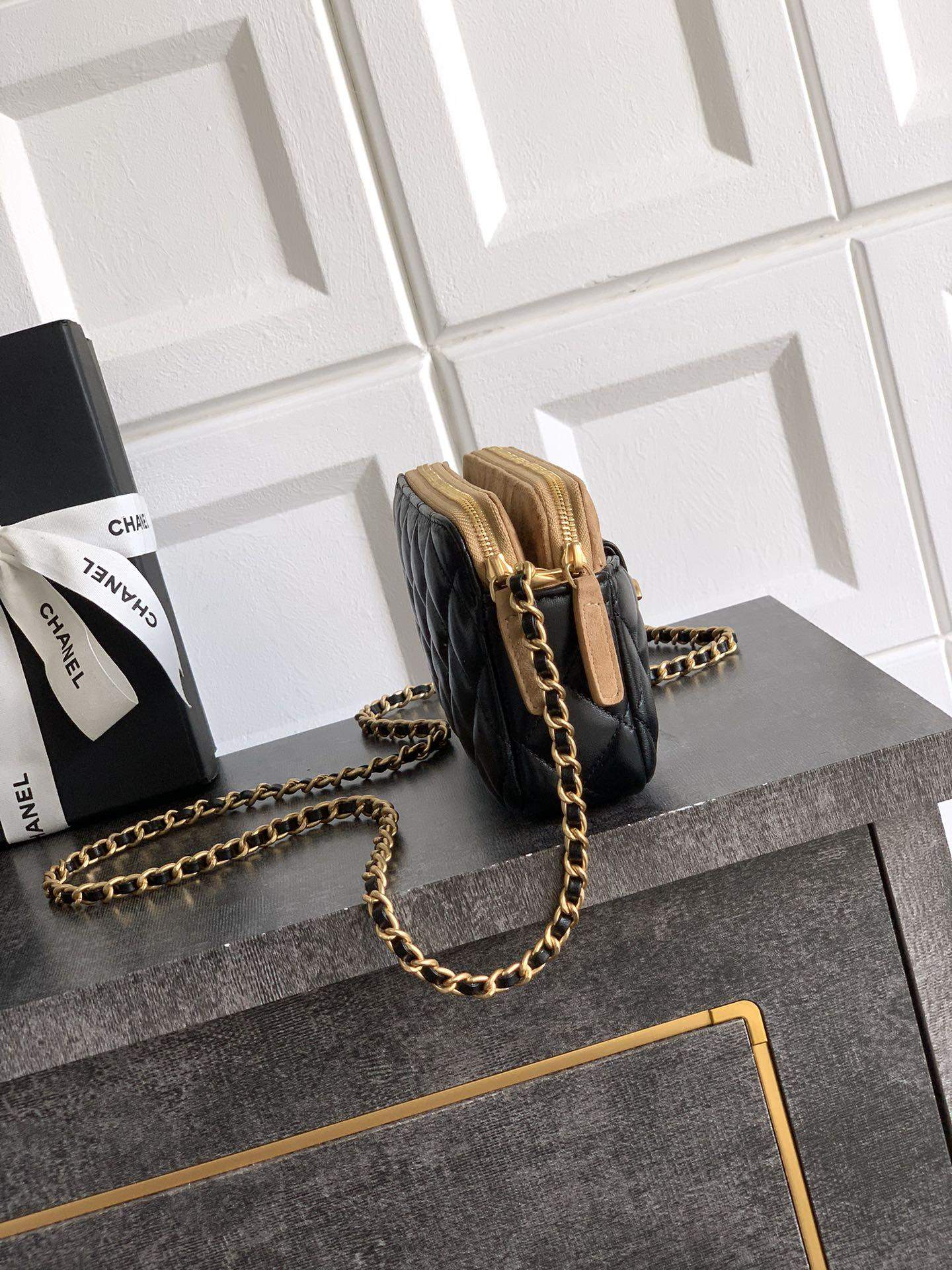 Premium zipped replica phone holder with chain. Stylish, high-quality replica mini bag with practical design and elegant look.