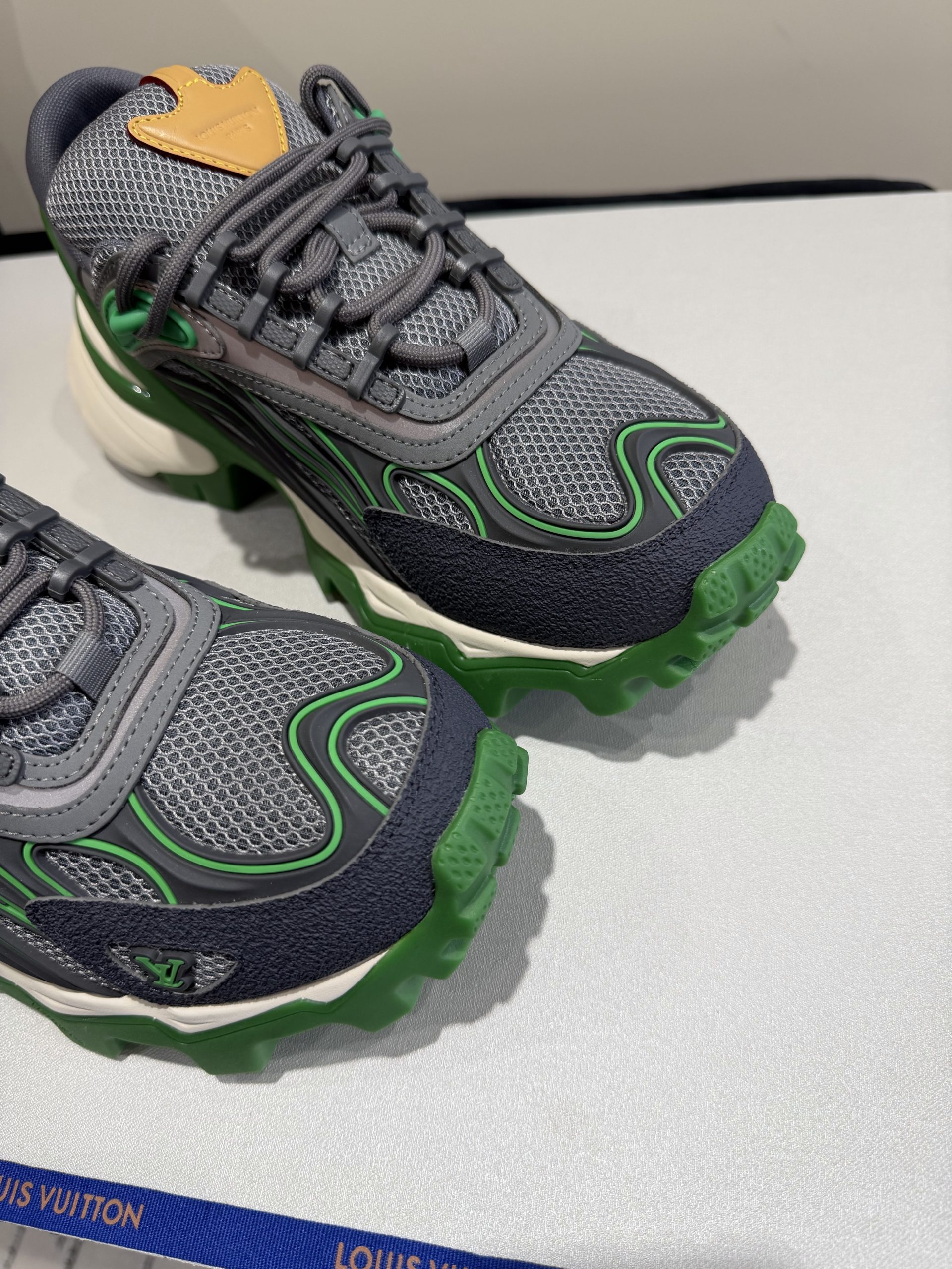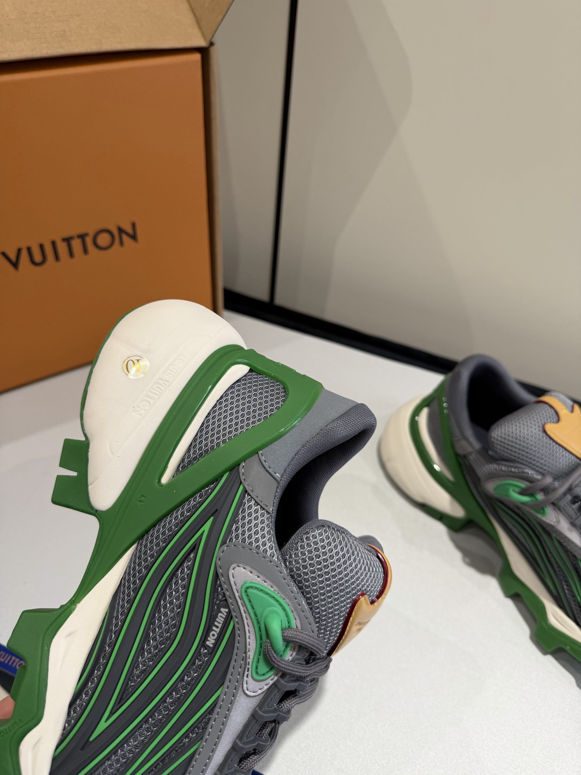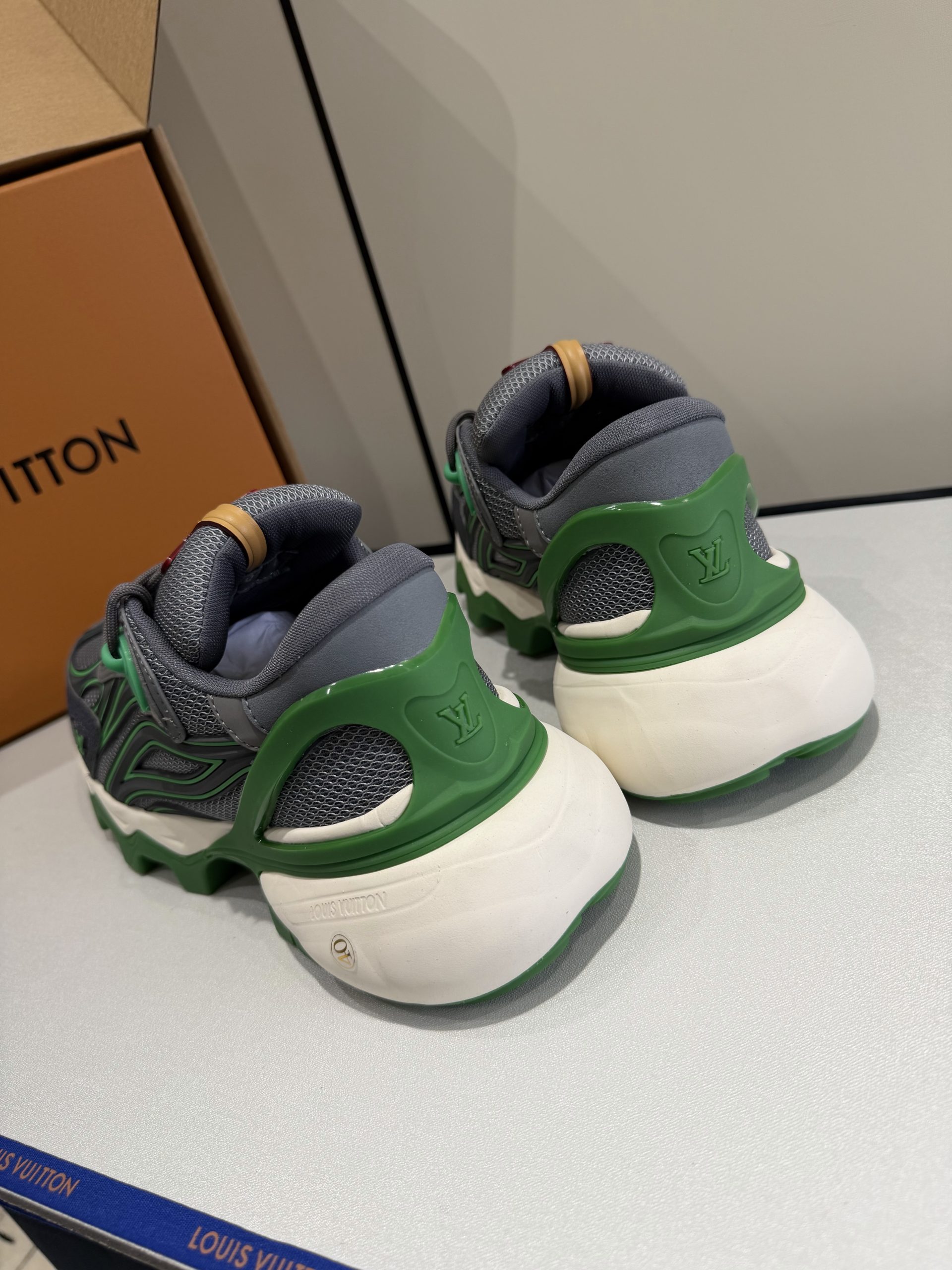 Attention to detail defines this replica sneaker. The stitching is precise and clean. The sole feels firm yet lightweight. Subtle LV-inspired accents enhance the luxury aesthetic without overpowering the overall design. Every detail reflects premium replica craftsmanship inspired by Louis Vuitton standards.