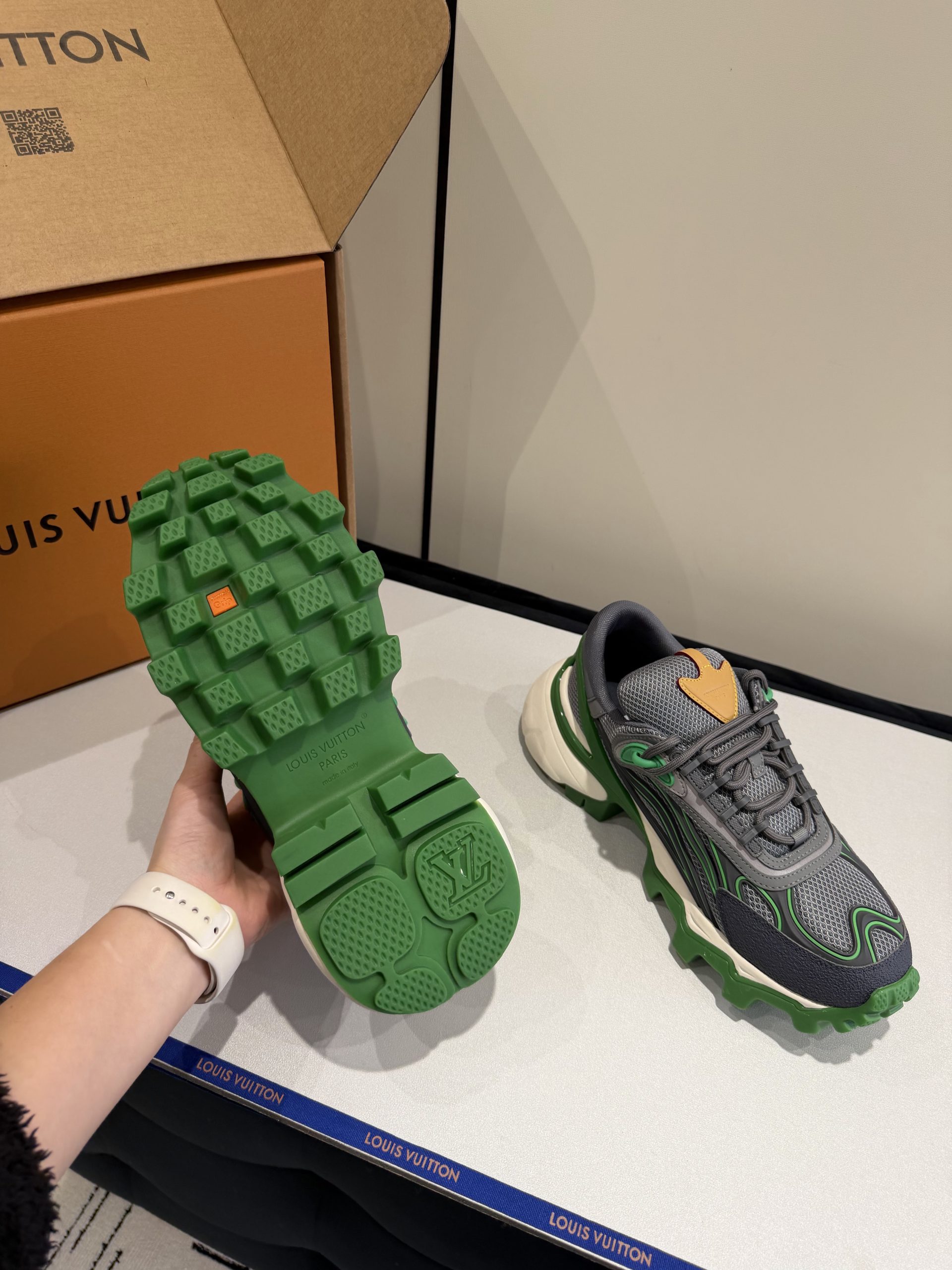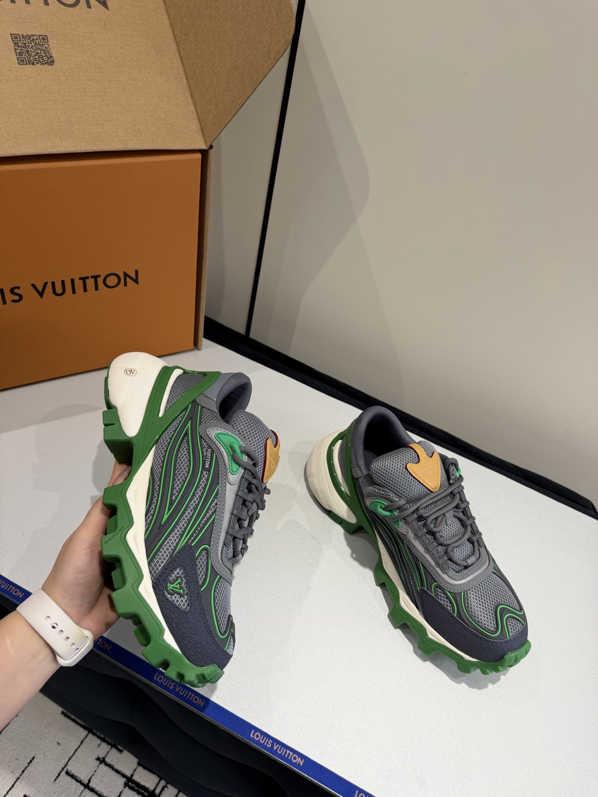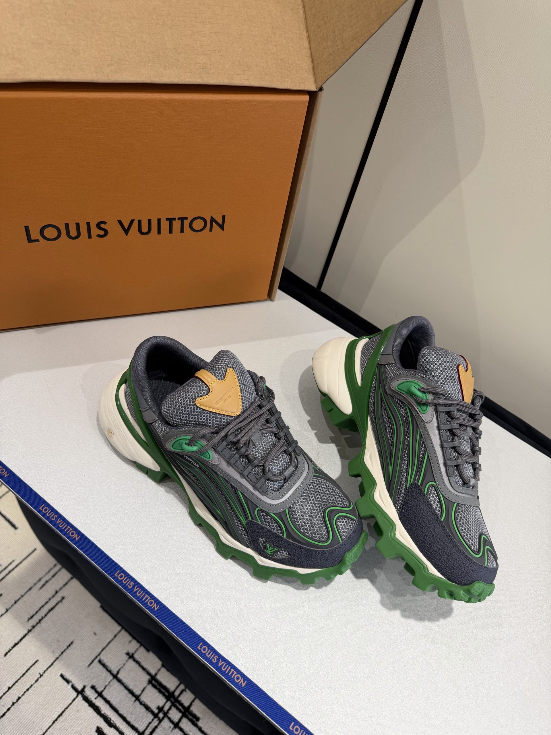 Attention to detail defines this replica sneaker. The stitching is precise and clean. The sole feels firm yet lightweight. Subtle LV-inspired accents enhance the luxury aesthetic without overpowering the overall design. Every detail reflects premium replica craftsmanship inspired by Louis Vuitton standards.