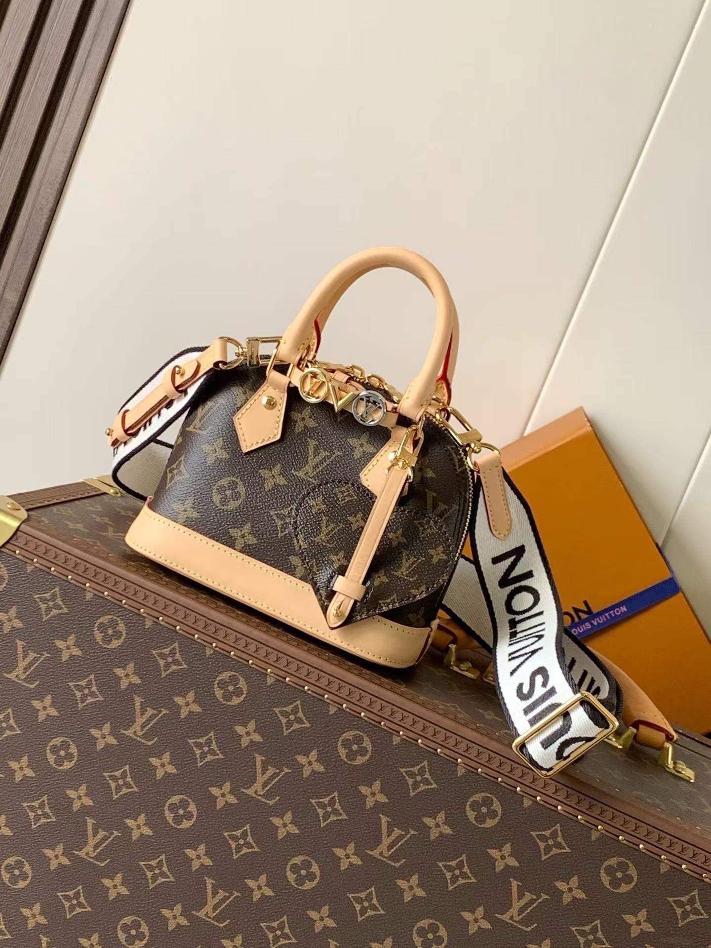 The Supreme Louis Vuitton Replica Alma Mini LV&I offers compact elegance, premium replica craftsmanship, and versatile wear for day or night.