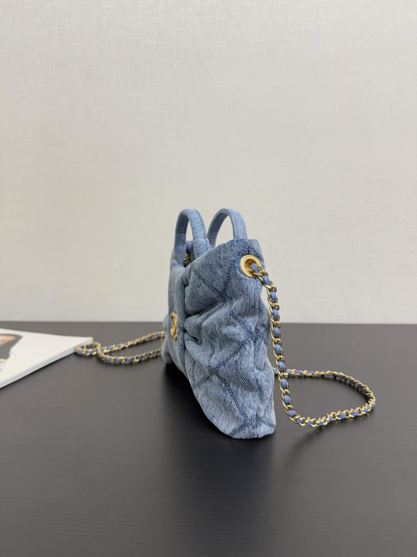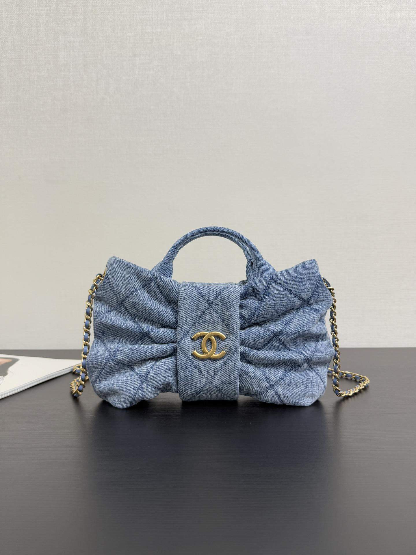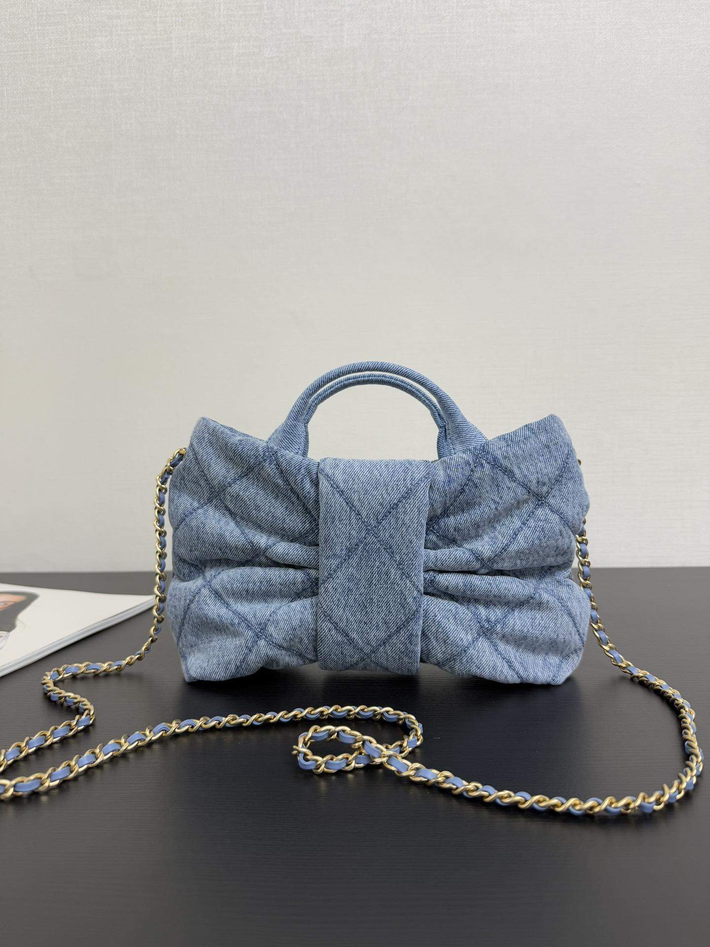 Top Grade Denim Mini Bow Replica Bag in durable denim. A high quality replica mini bag with bow detail, compact style, and everyday versatility.