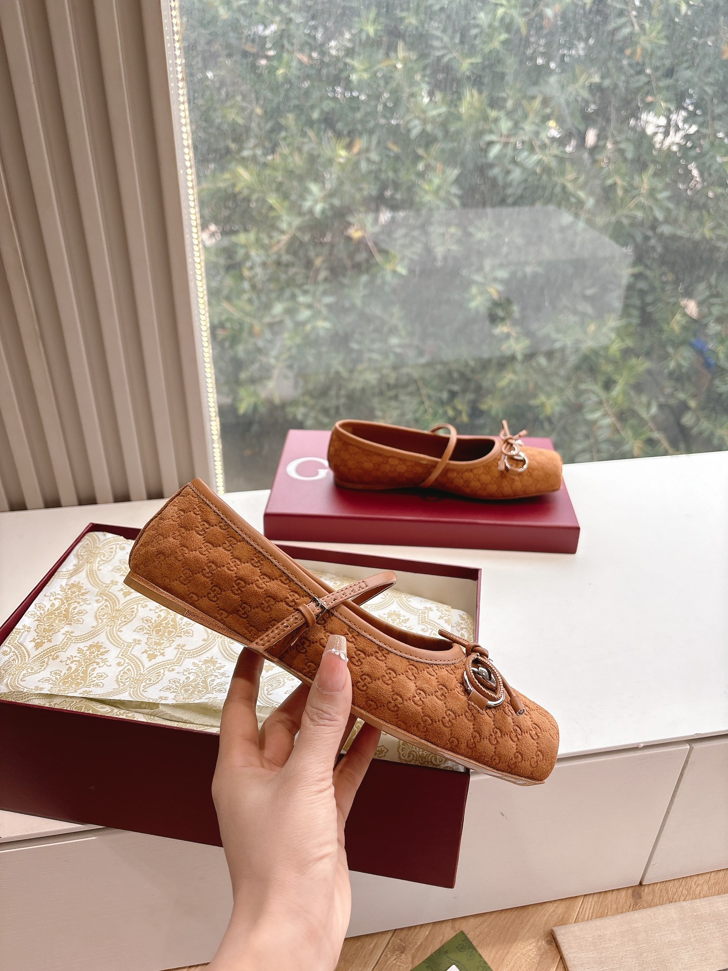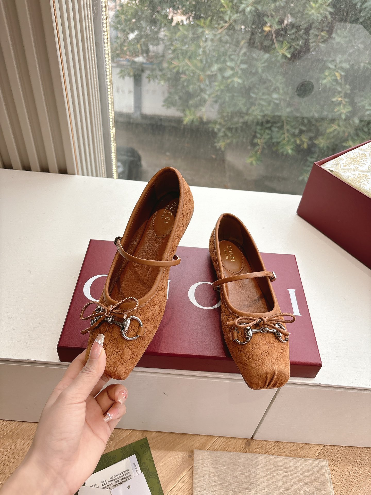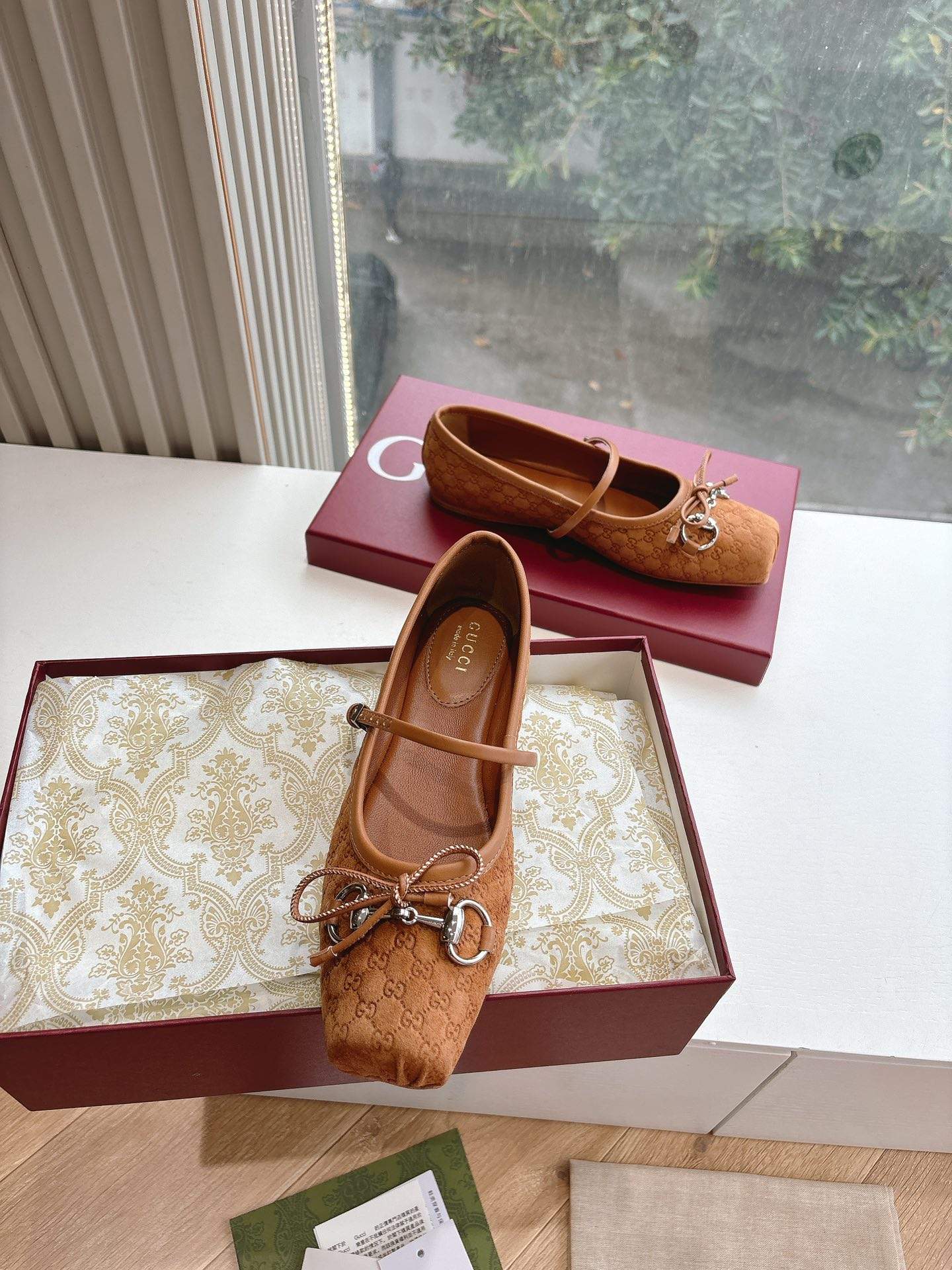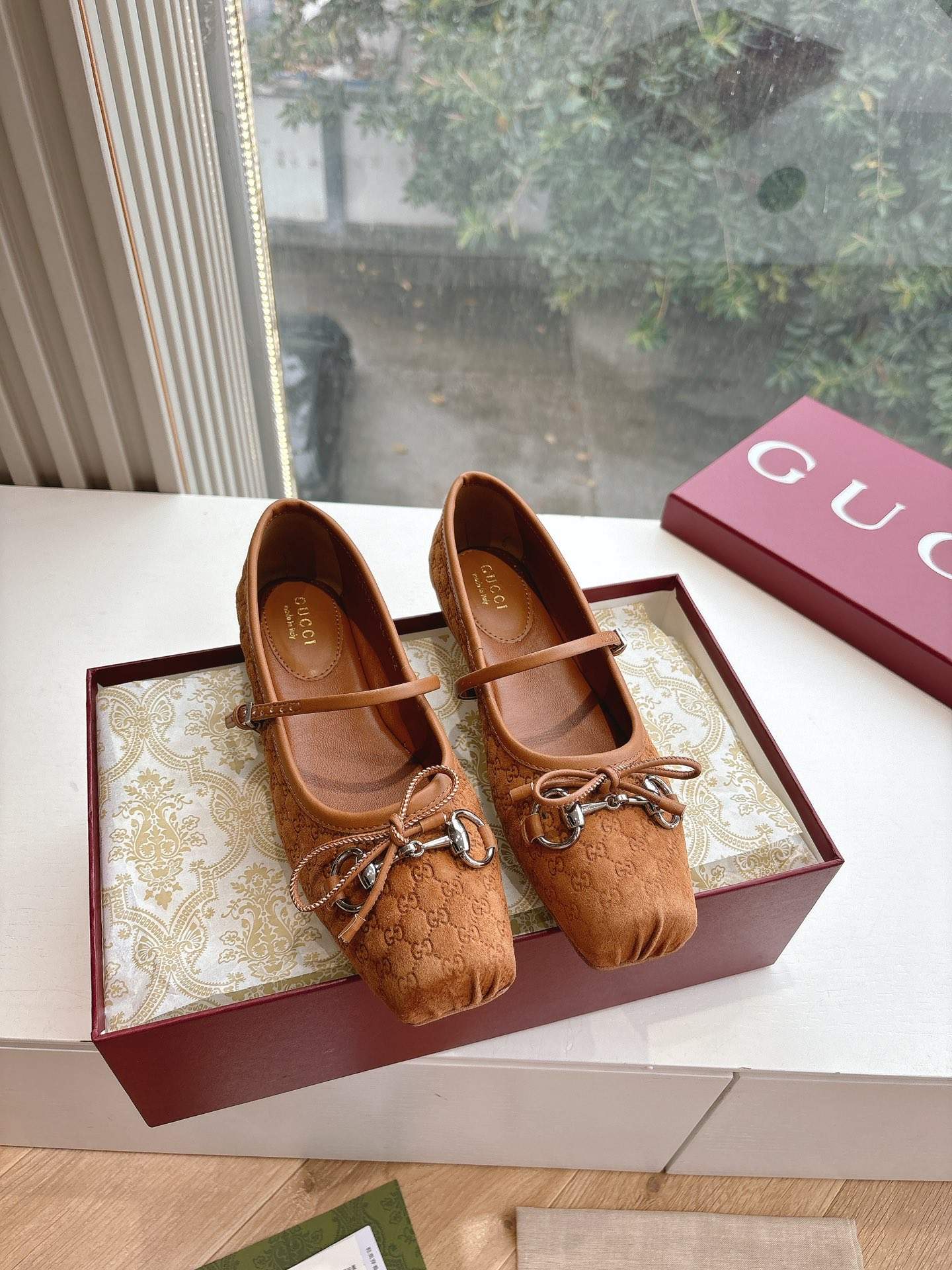 This top grade replica ballet flat is crafted from durable materials that offer a smooth and structured finish. The exterior feels soft while remaining supportive, helping the shoe keep its shape throughout the day. In addition, the stitching is neat and precise, reflecting the premium craftsmanship behind this replica footwear. As a result, it closely mirrors the refined appearance of the original Gucci ballet flat.