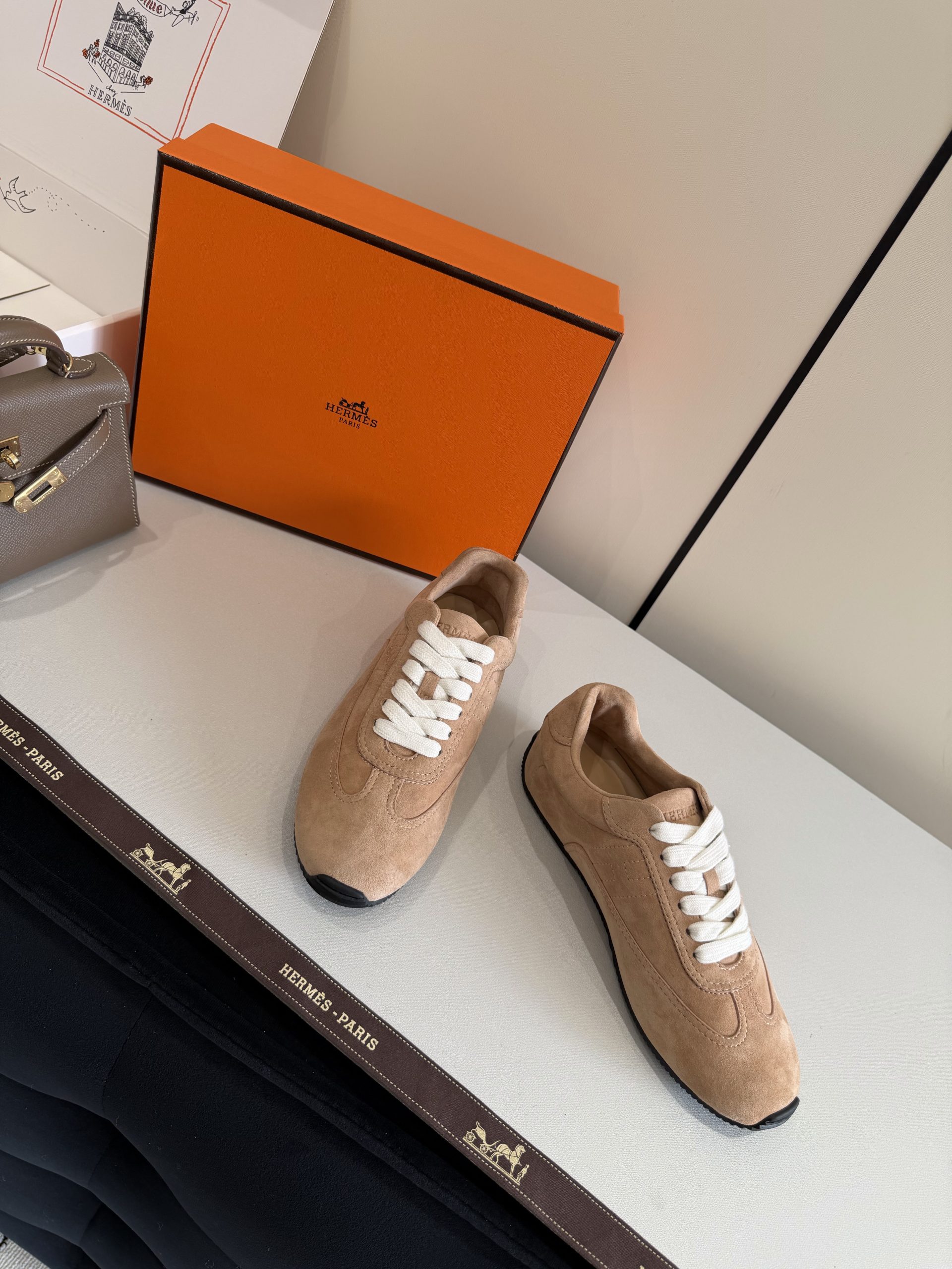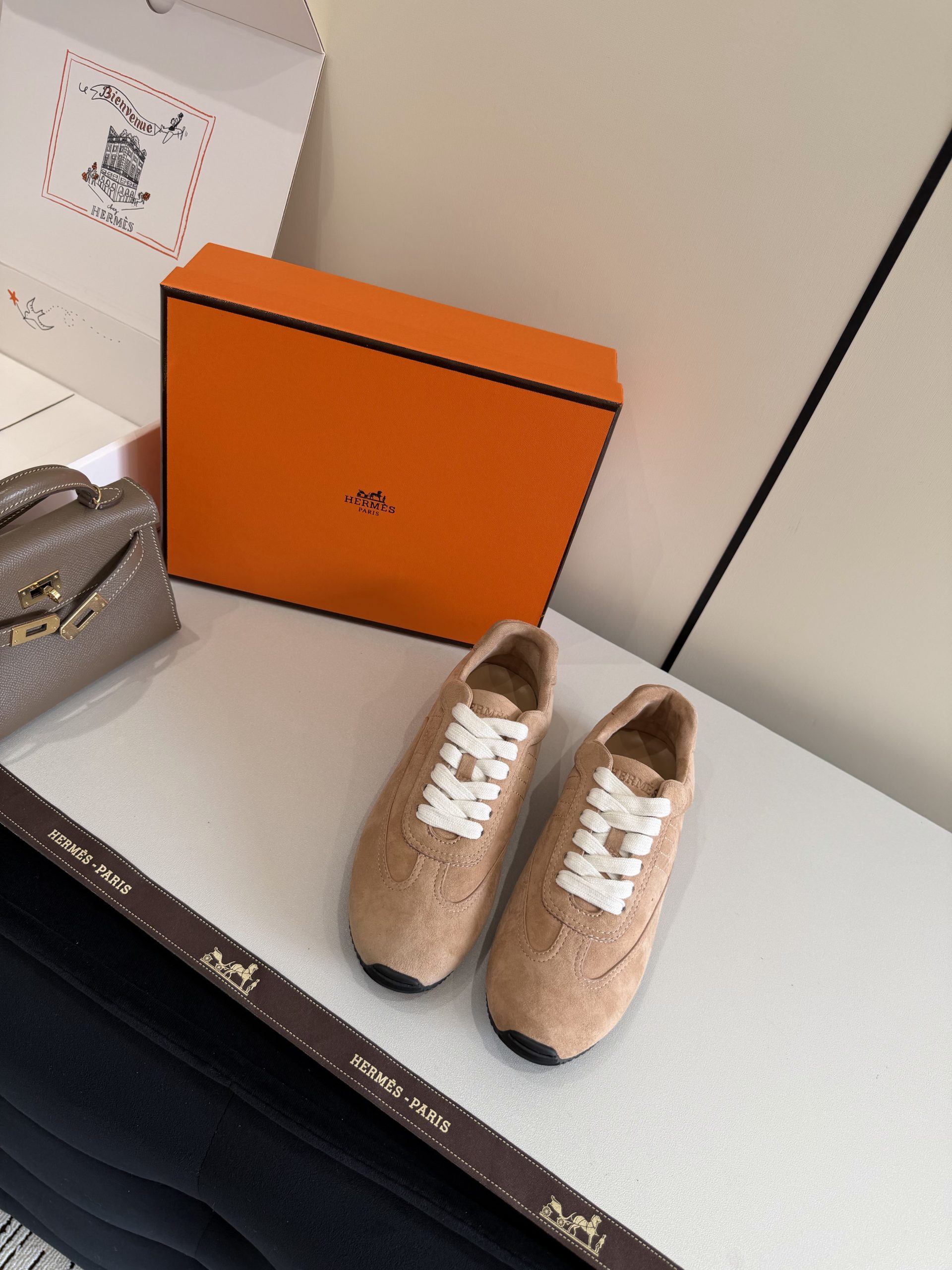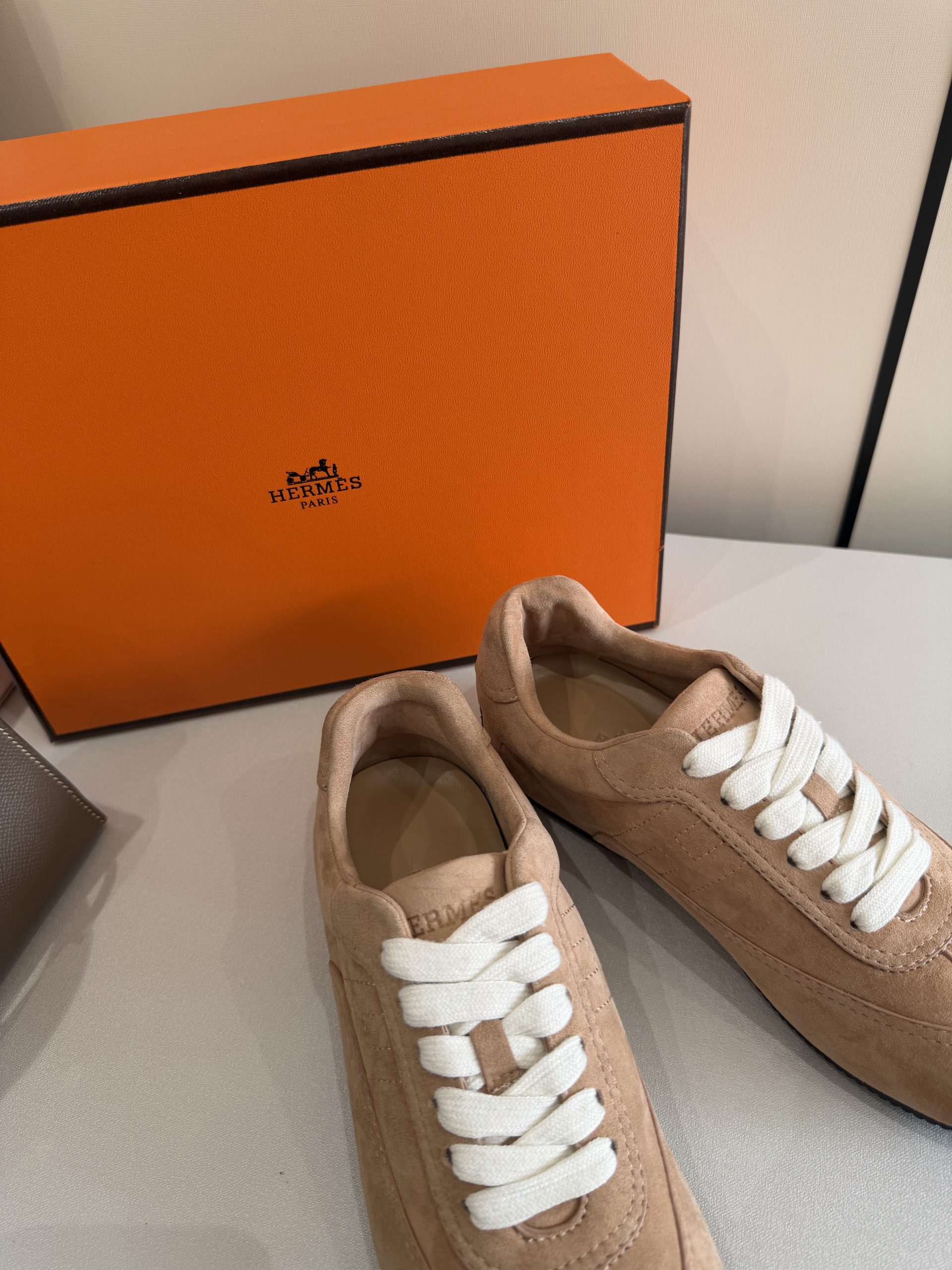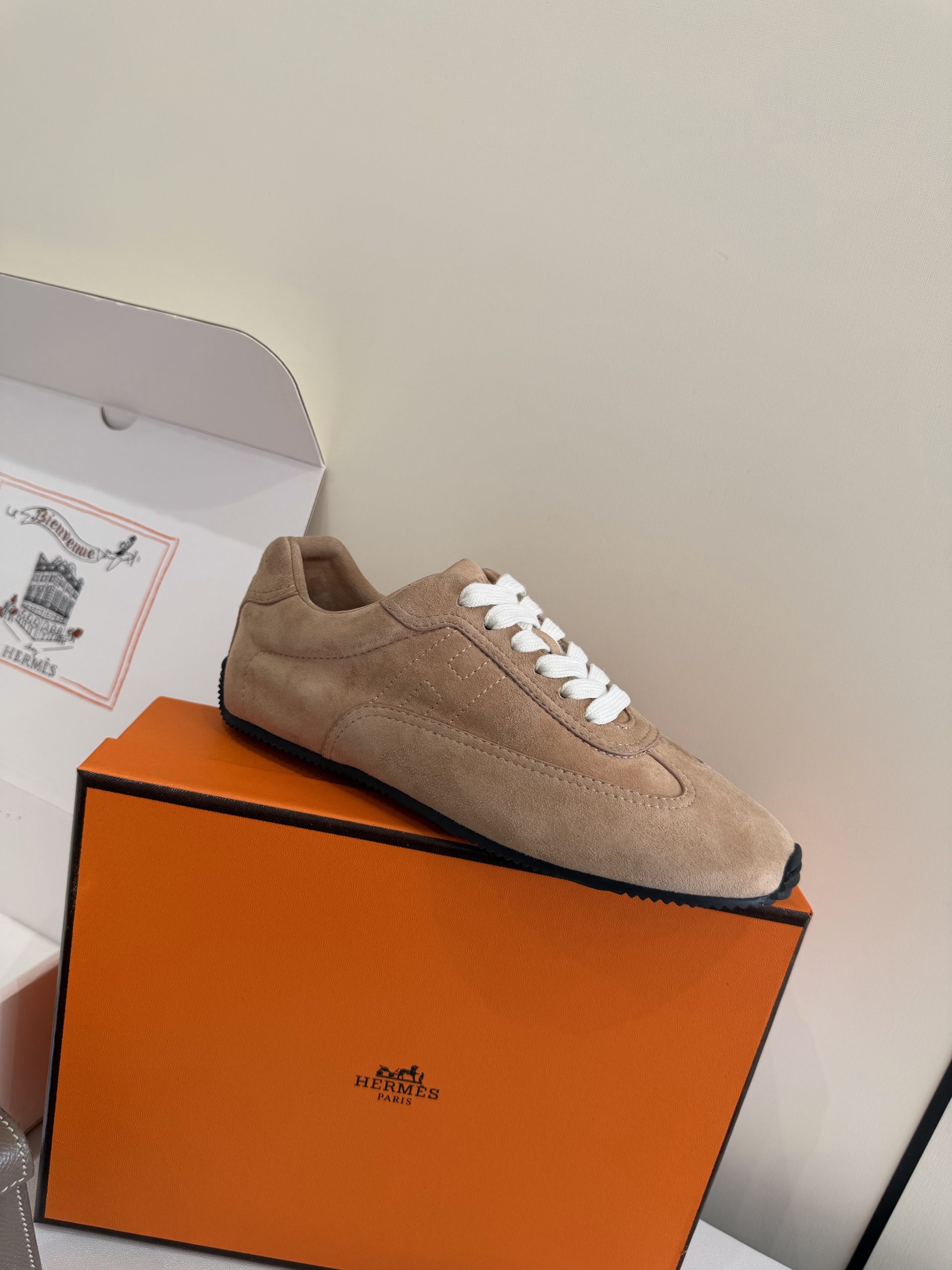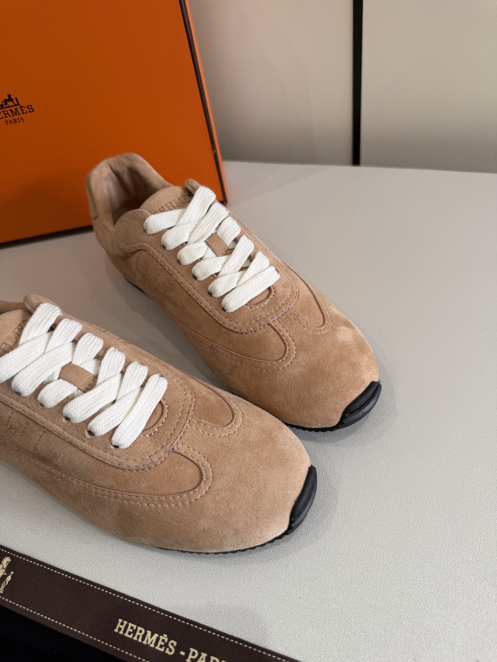 Top grade Hermes Master Replica Sneaker crafted in suede goatskin with thin sole. Lightweight, minimalist, and ideal for modern casual outfits.