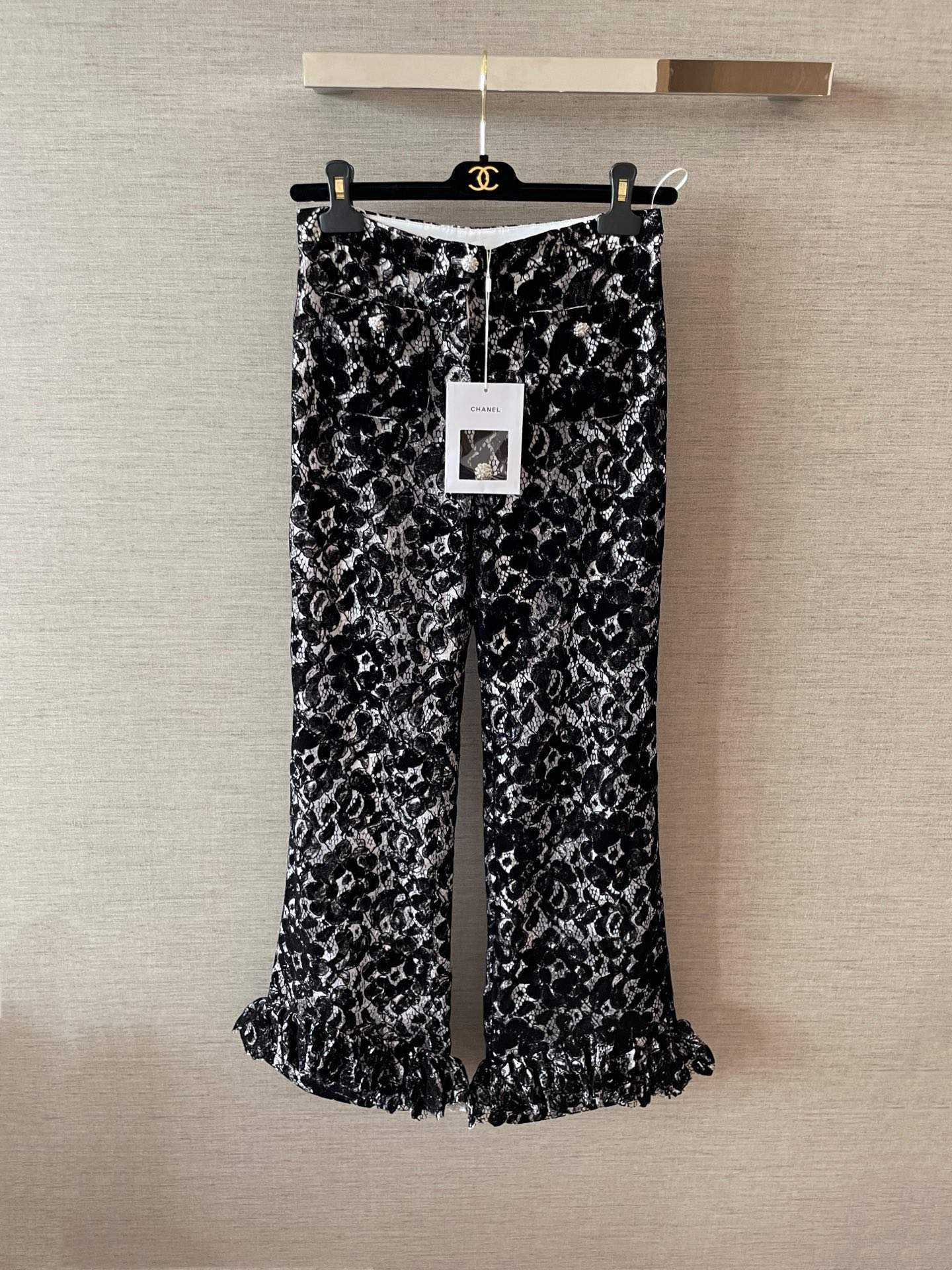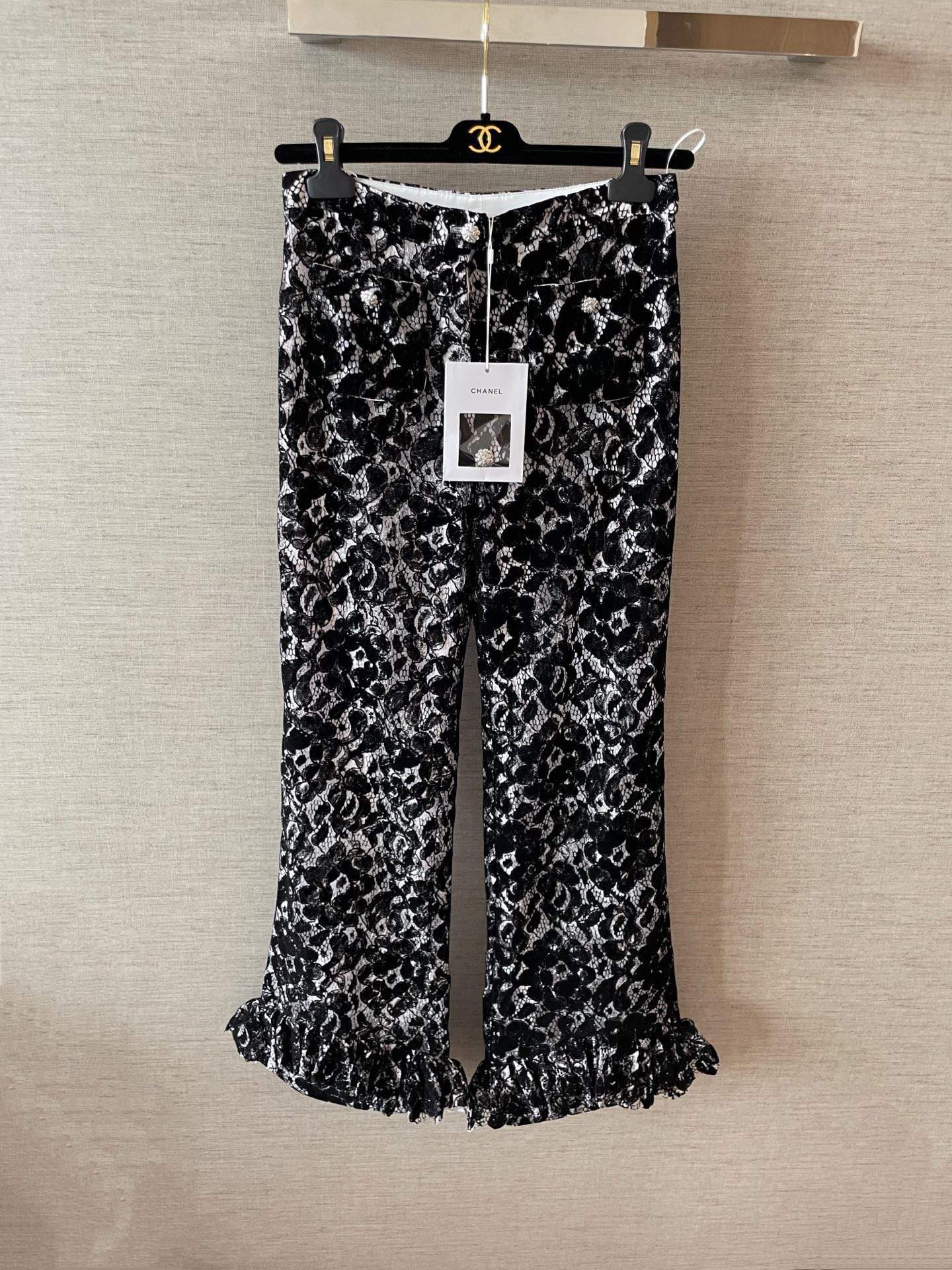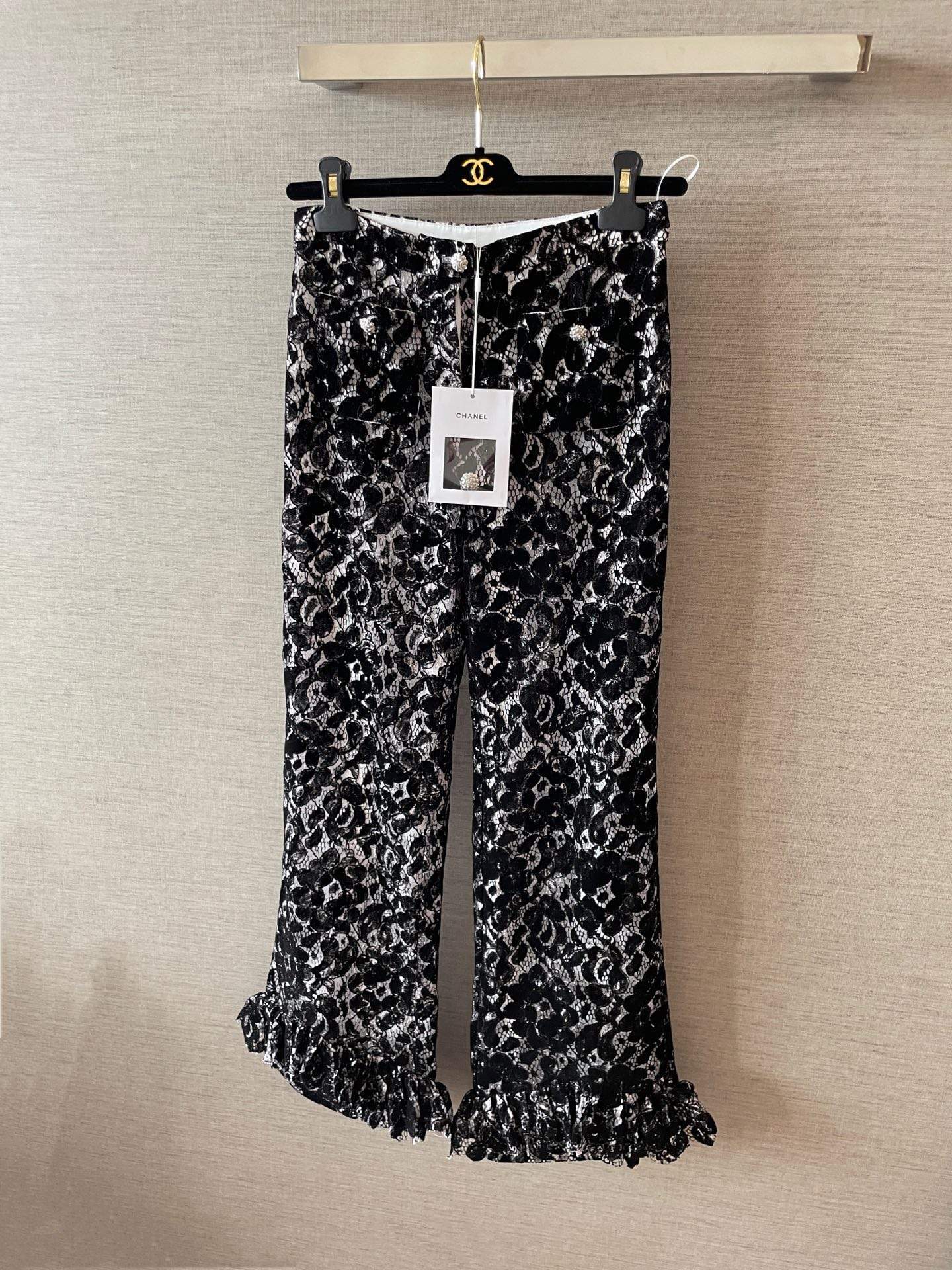 Elegant replica velvet pant featuring lace details and a tailored silhouette. Soft, luxurious, and perfectly versatile for both casual and formal looks.